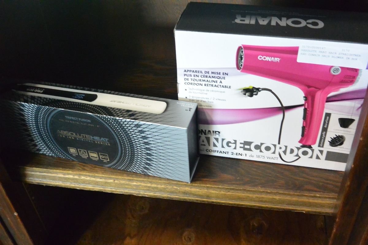 ABSOLUTE HEAT HAIR STRAIGHTNER AND CONAIR HAIR BLOWER IN BOX