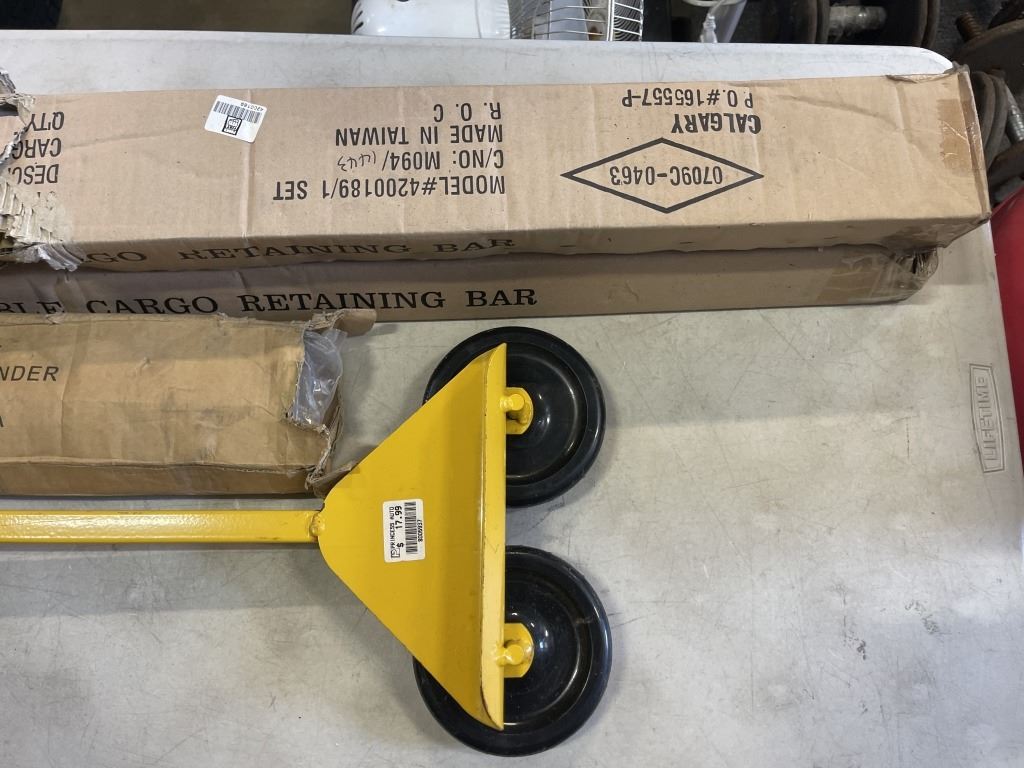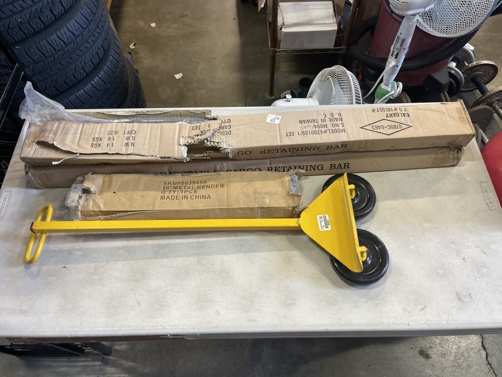 ADJUSTABLE CARGO RETAINING BARS, 18" METAL BENDER AND SHEET GOODS DOLLY