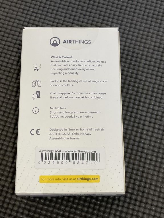 AIRTHINGS CORENTIUM RADON GAS MONITOR - TESTED WORKING, RETAIL $179