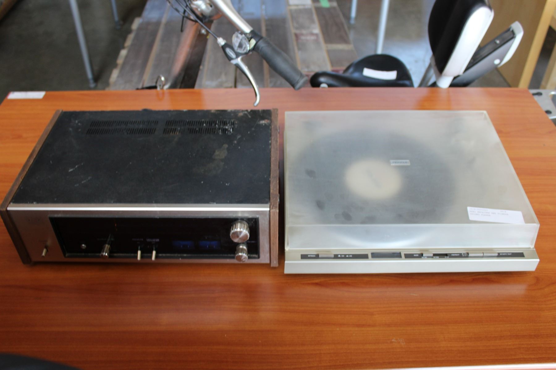 AKAI RECEIVER AND PIONEER RECORD PLAYER