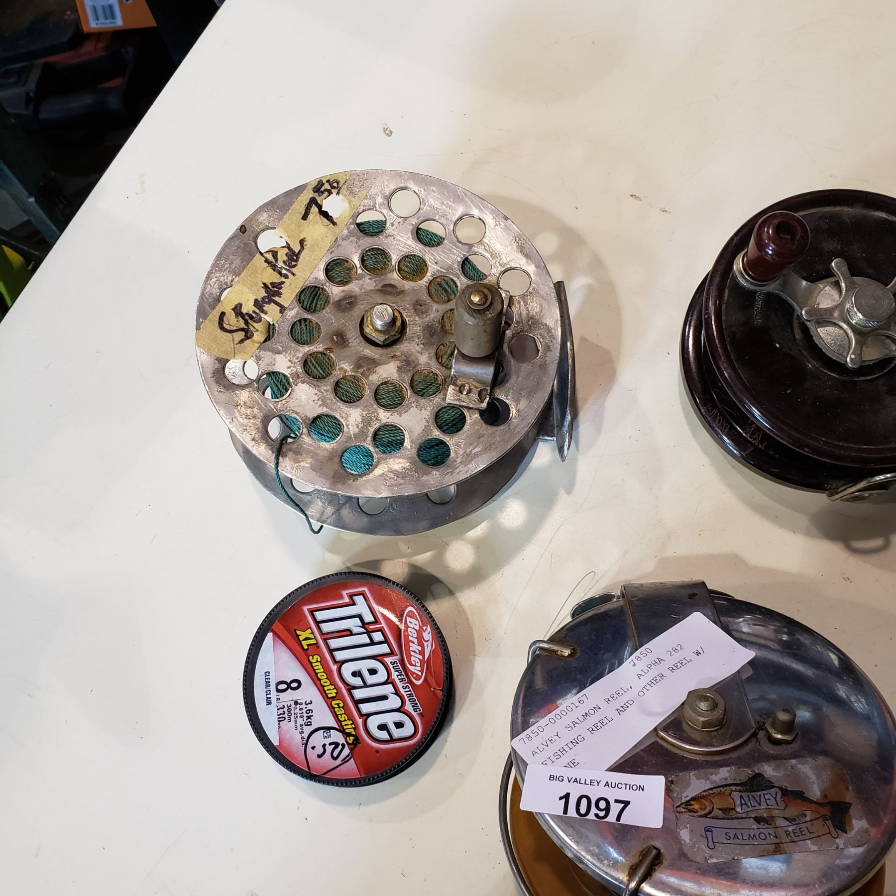 ALVEY SALMON REEL, ALPHA 282 FISHING REEL AND OTHER REEL W/ LINE