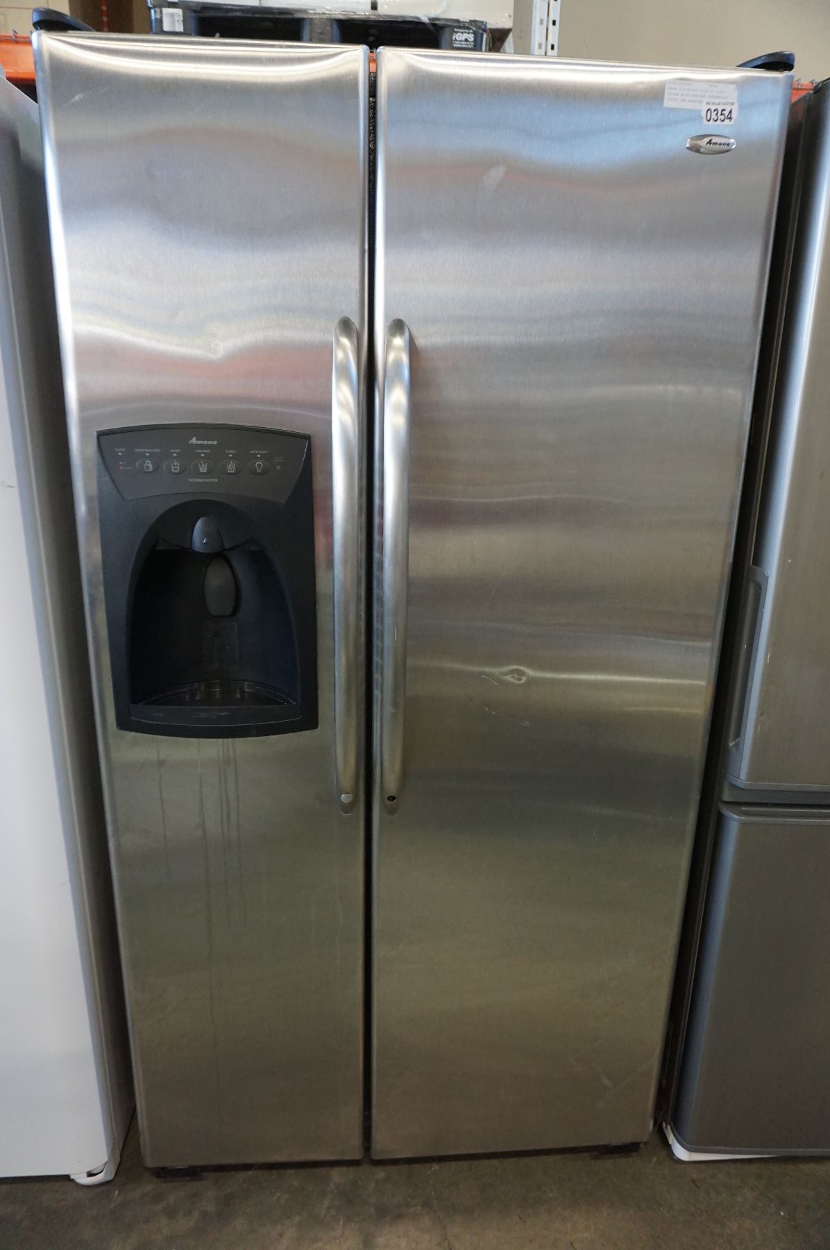 AMANA STAINLESS SIDE BY SIDE FRIDGE WITH FREEZER GUARANTEED TESTED AND WORKING