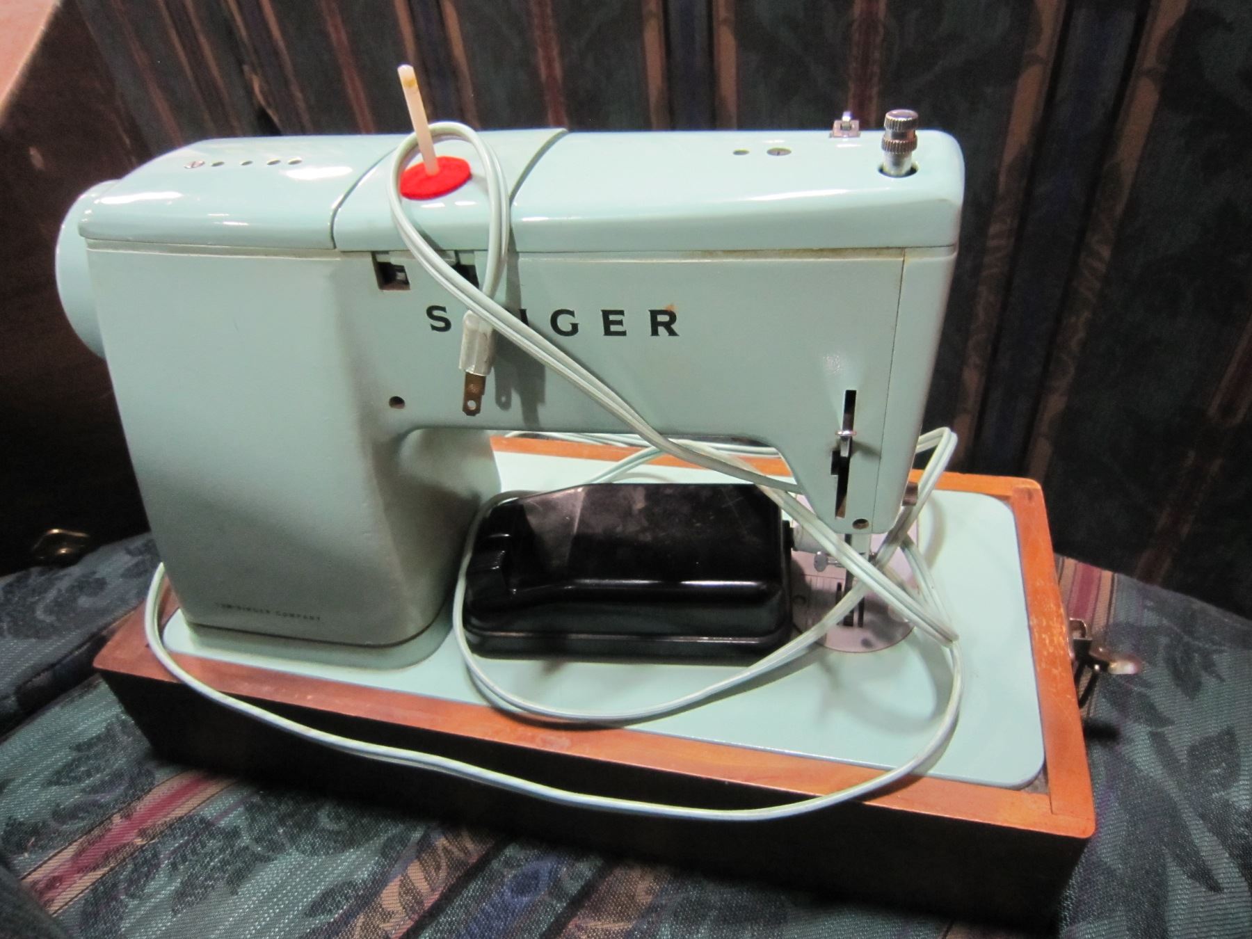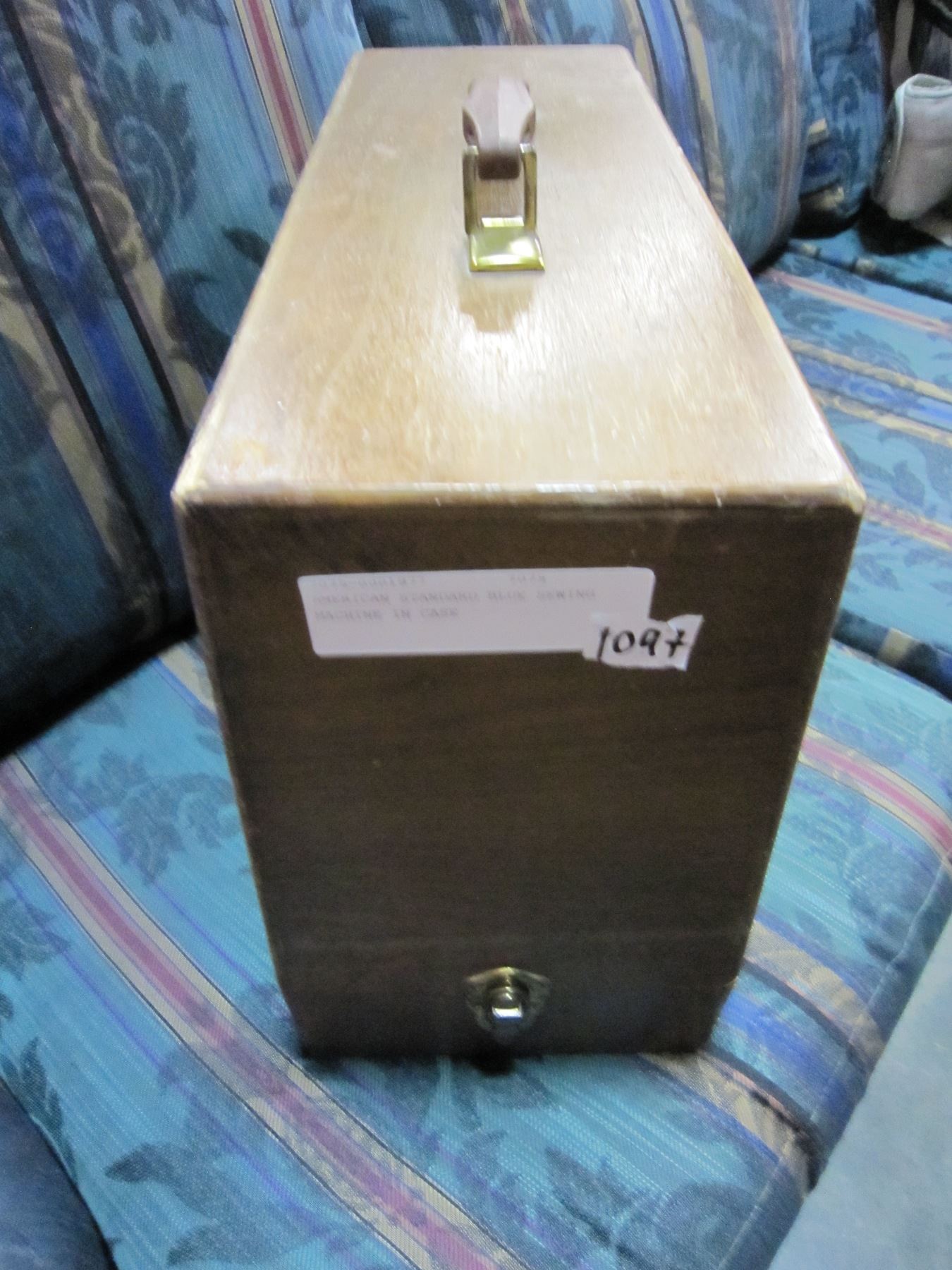 AMERICAN STANDARD BLUE SEWING MACHINE IN CASE