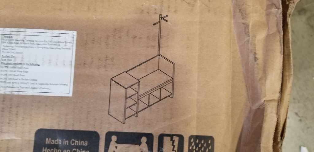 AMERIWOOD HOME STORAGE BENCH AND COAT RACK, RETAIL $319