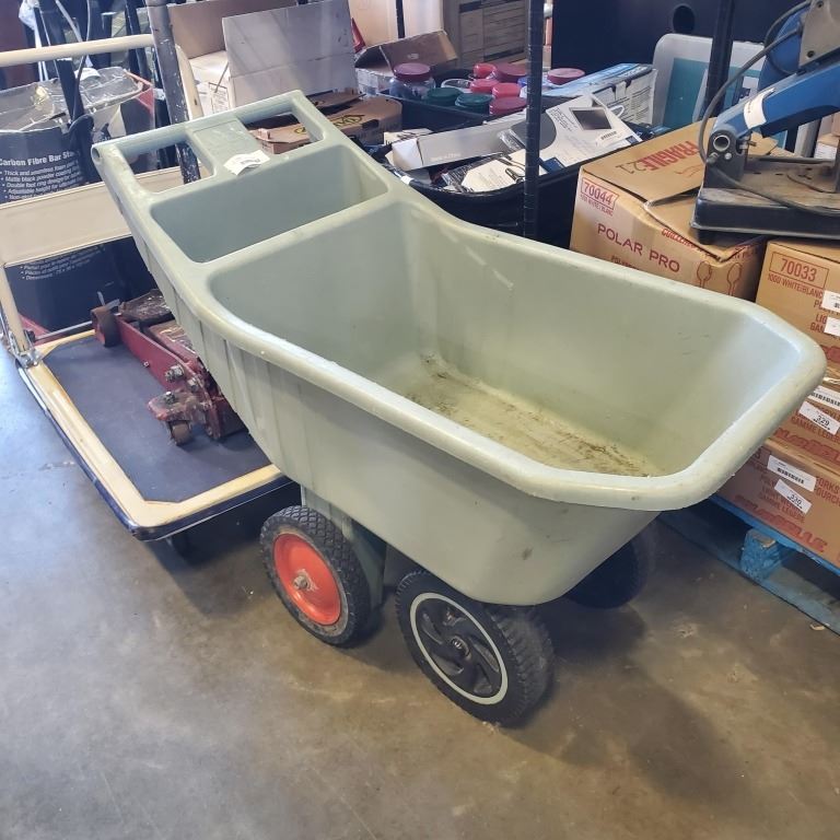 AMES 4 WHEEL PLASTIC EASY DUMP WHEELBARRELL