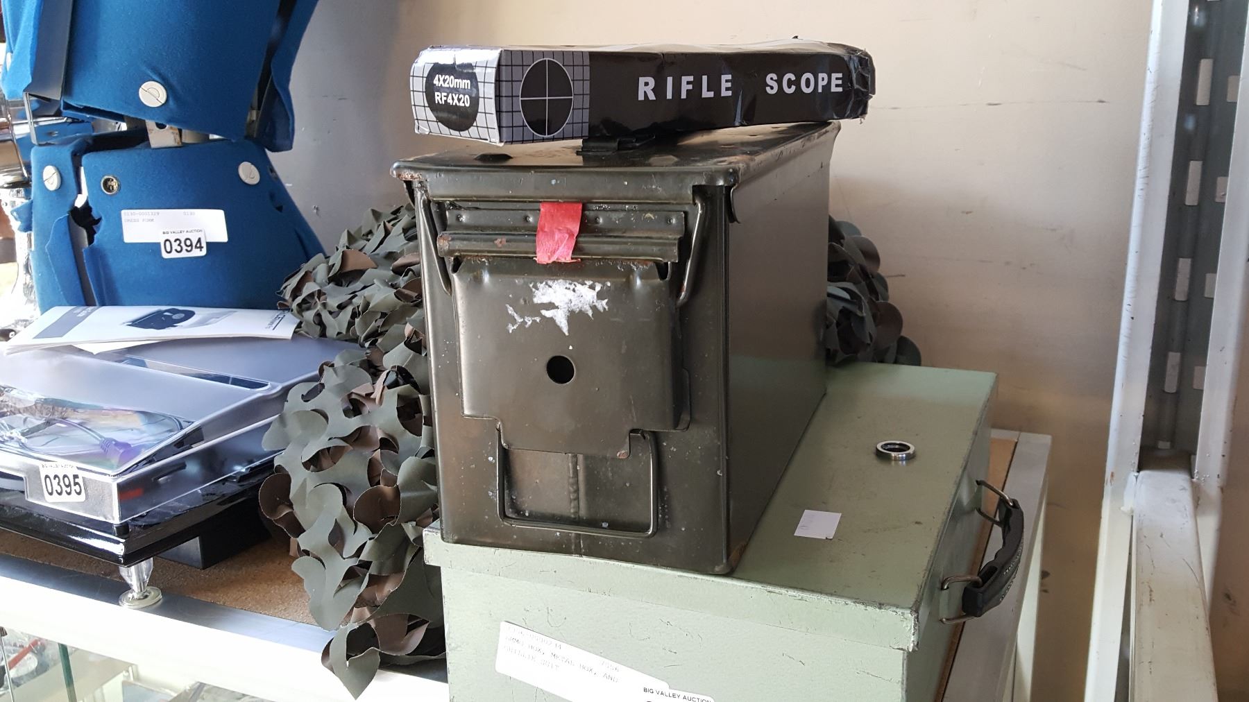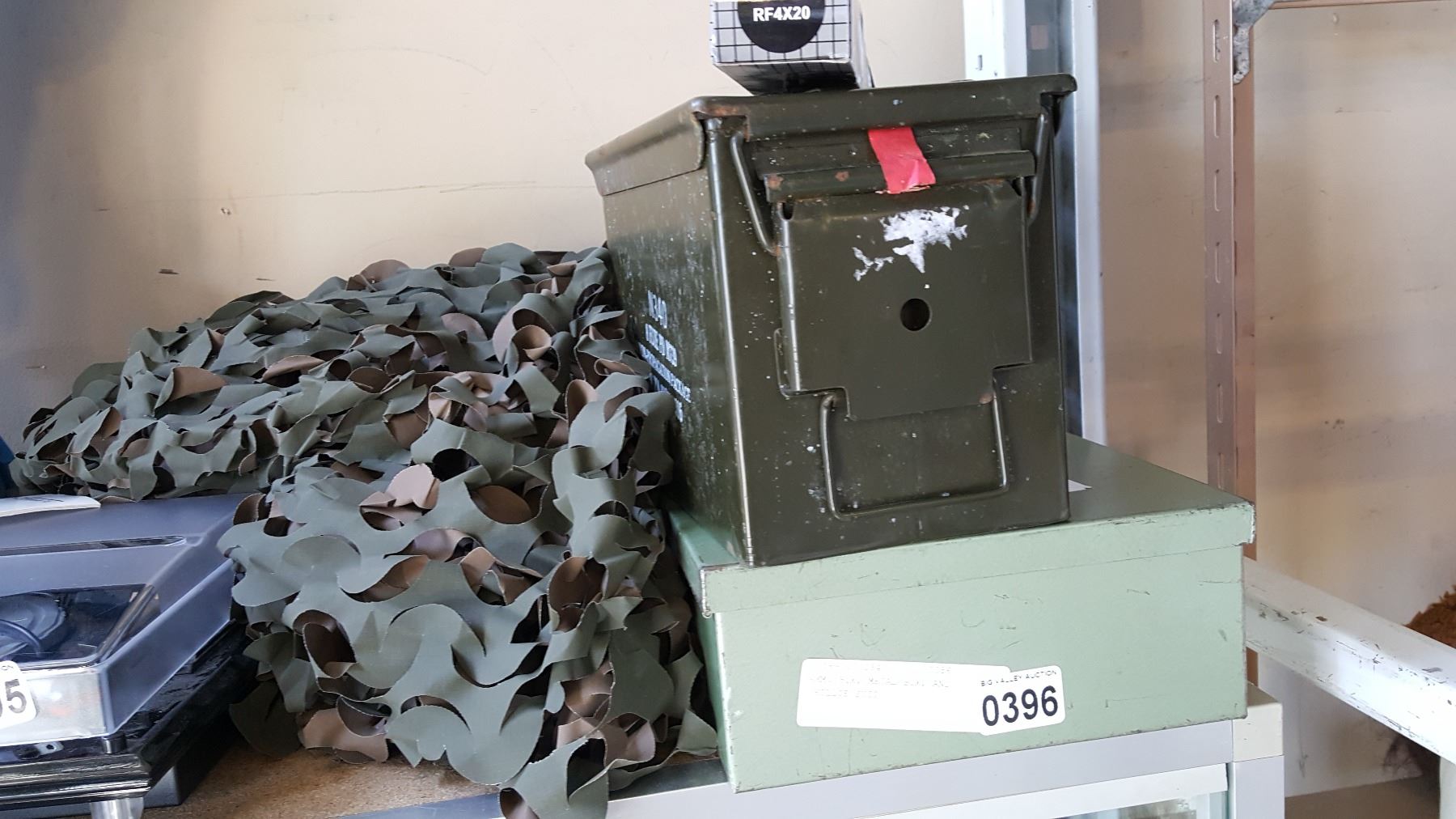 AMMO BOX, METAL BOX, AND GHILLIE SUIT