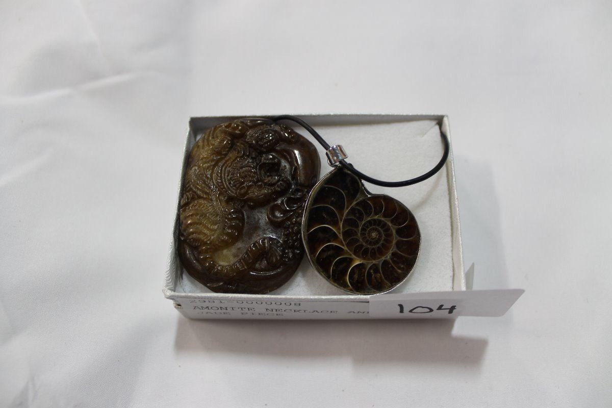 AMONITE NECKLACE AND CARVED JADE PIECE