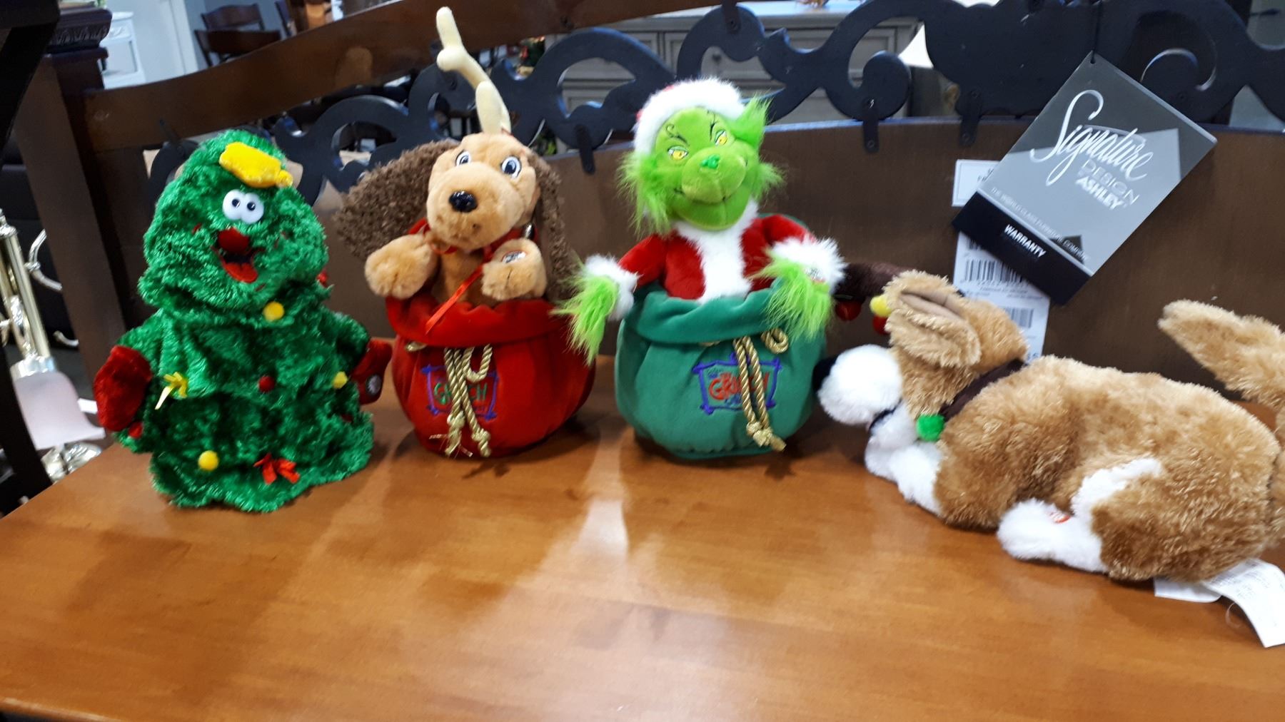 ANIMATED SINGING CHRISTMAS FIGURES SANTA, SNOWMEN AND RACCOONS ALL WORKING