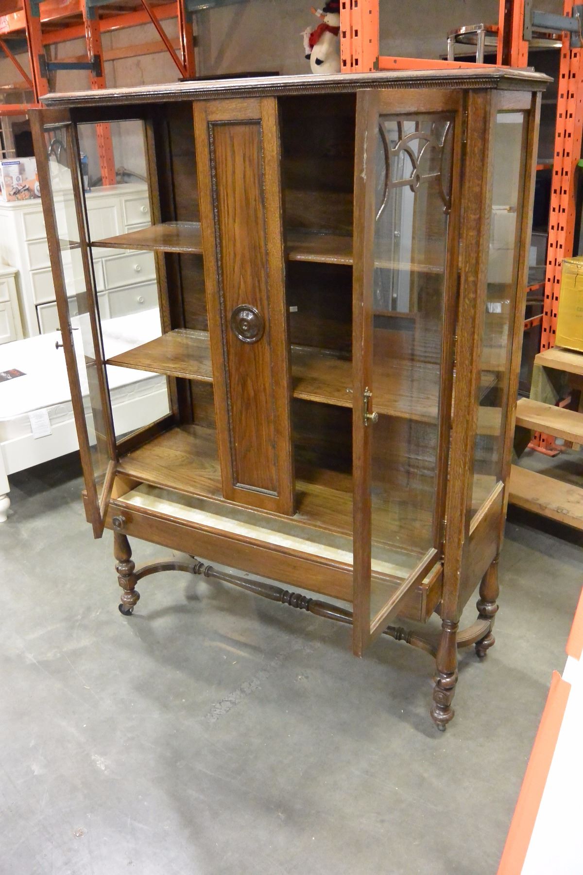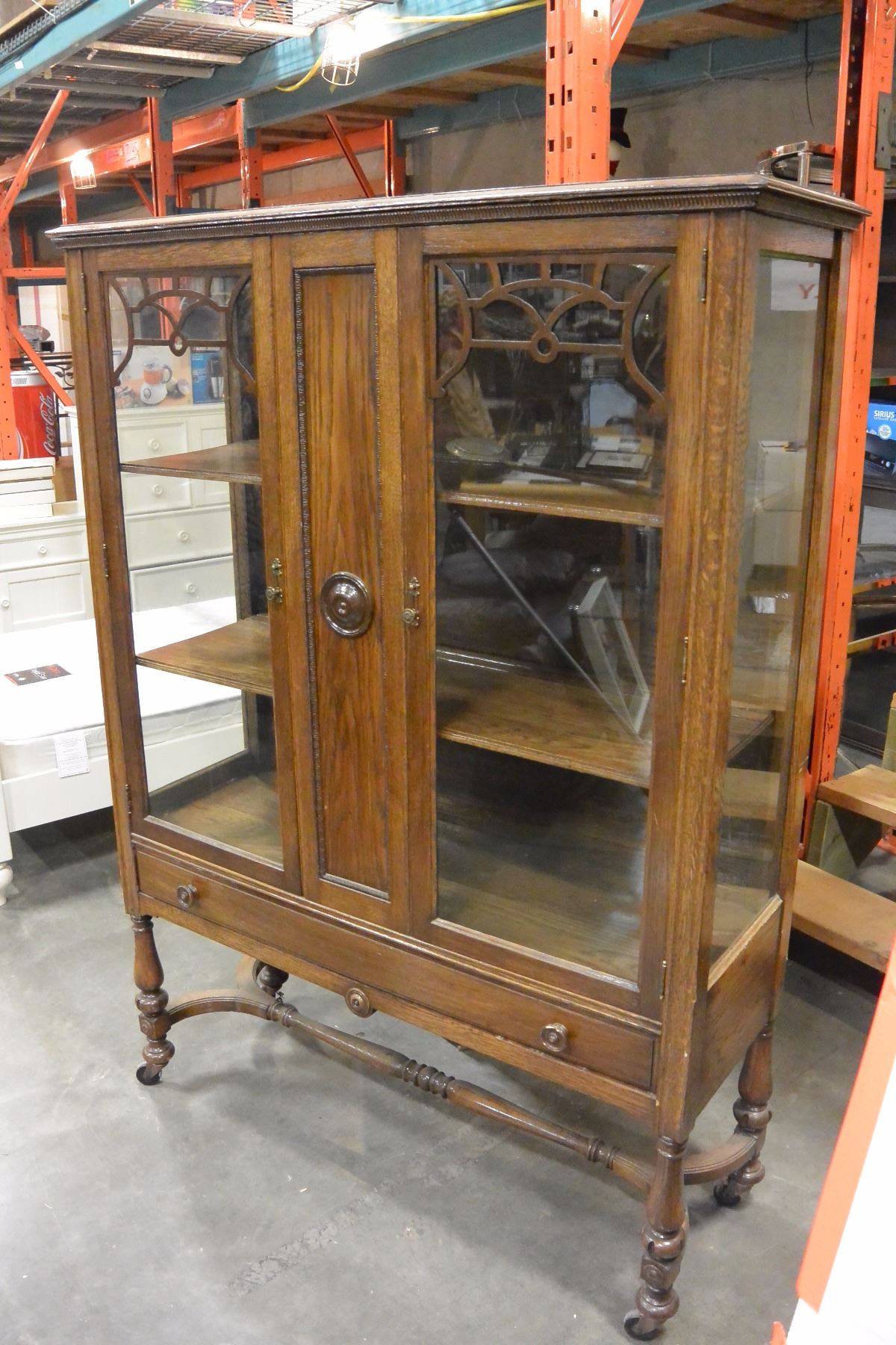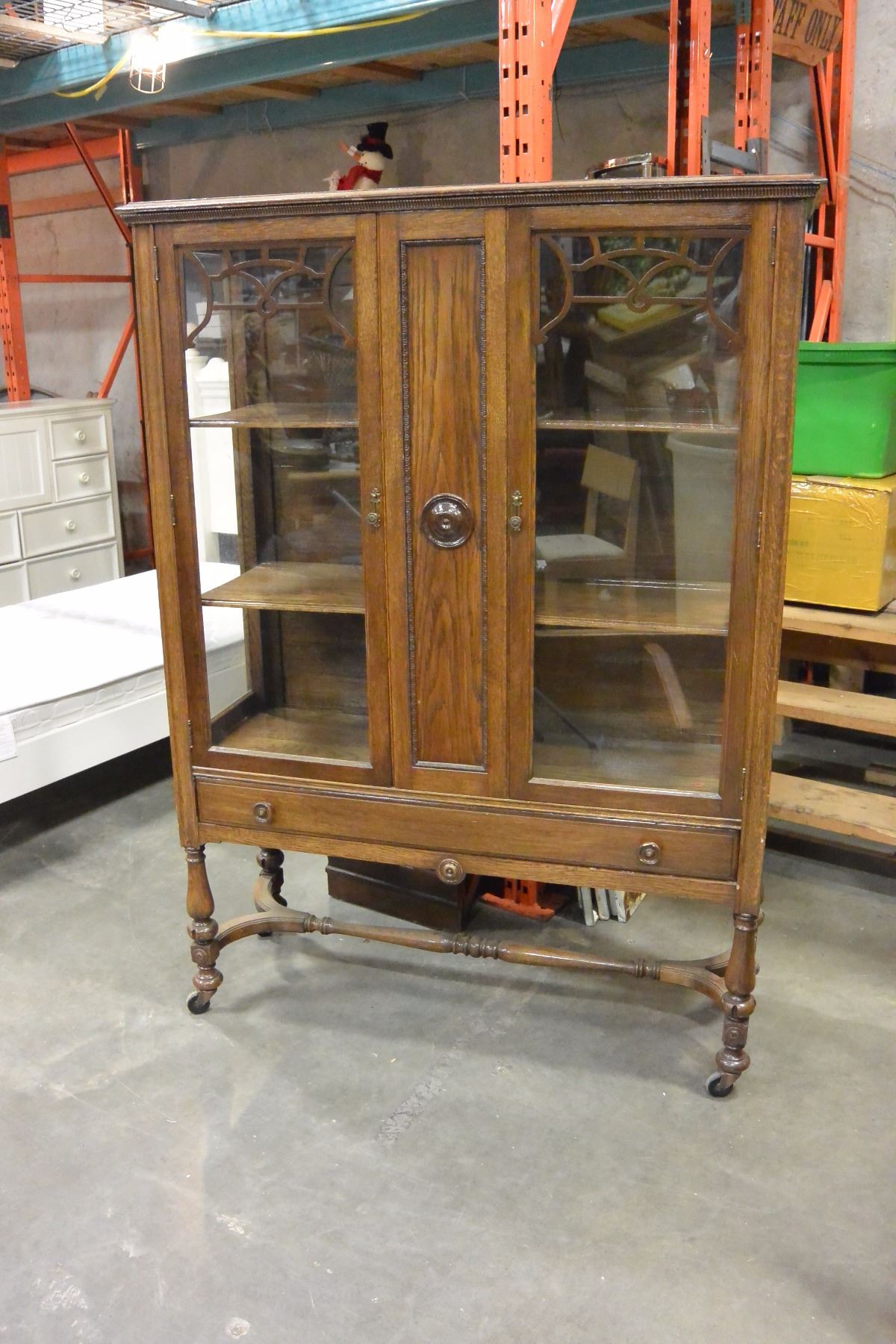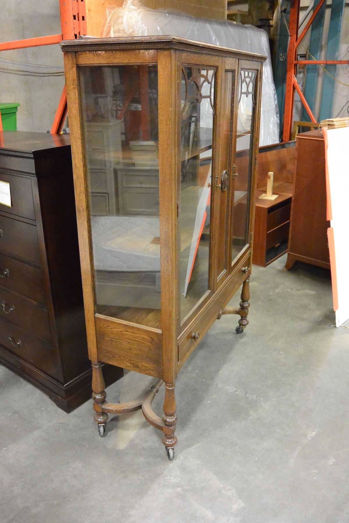 ANTIQUE 2 DOOR DISPLAY CABINET ON CASTORS