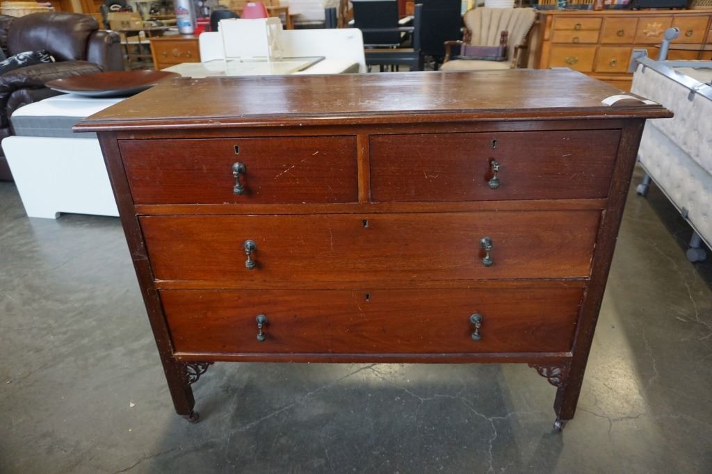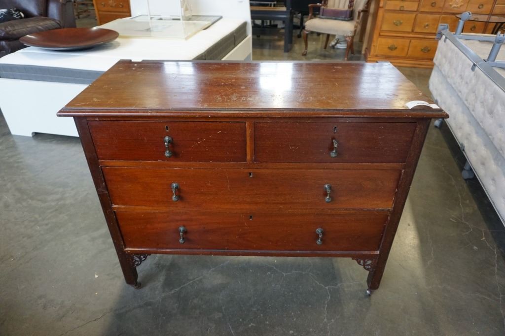 ANTIQUE 4 DRAWER DRESSER ON CASTORS