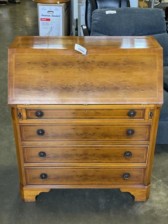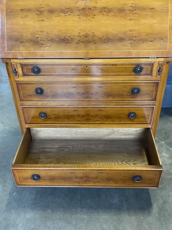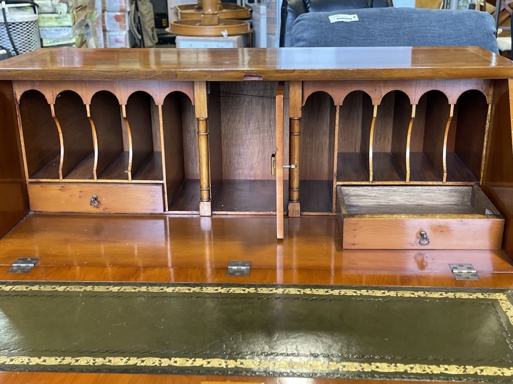 ANTIQUE ALLEN & APPLEYARD OF KNUTSFORD WRITERS DESK WITH LEATHER INLAY, YEW WOOD, IN VERY GOOD ORIGINAL CONDITION