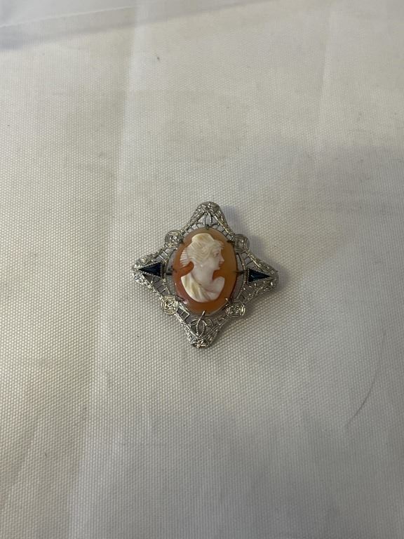 ANTIQUE ART DECO BROOCH WITH GENUINE CARVED CAMEO