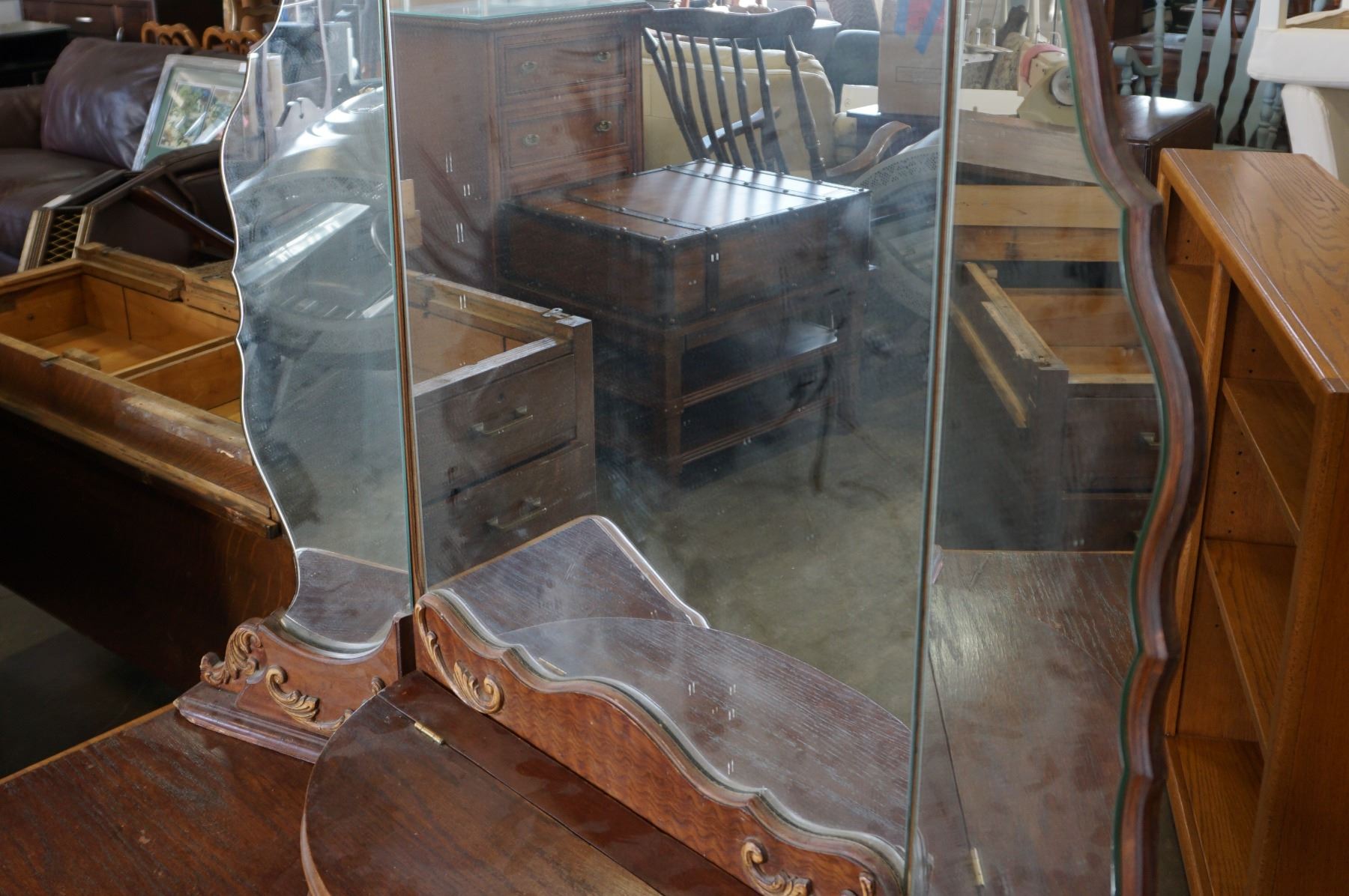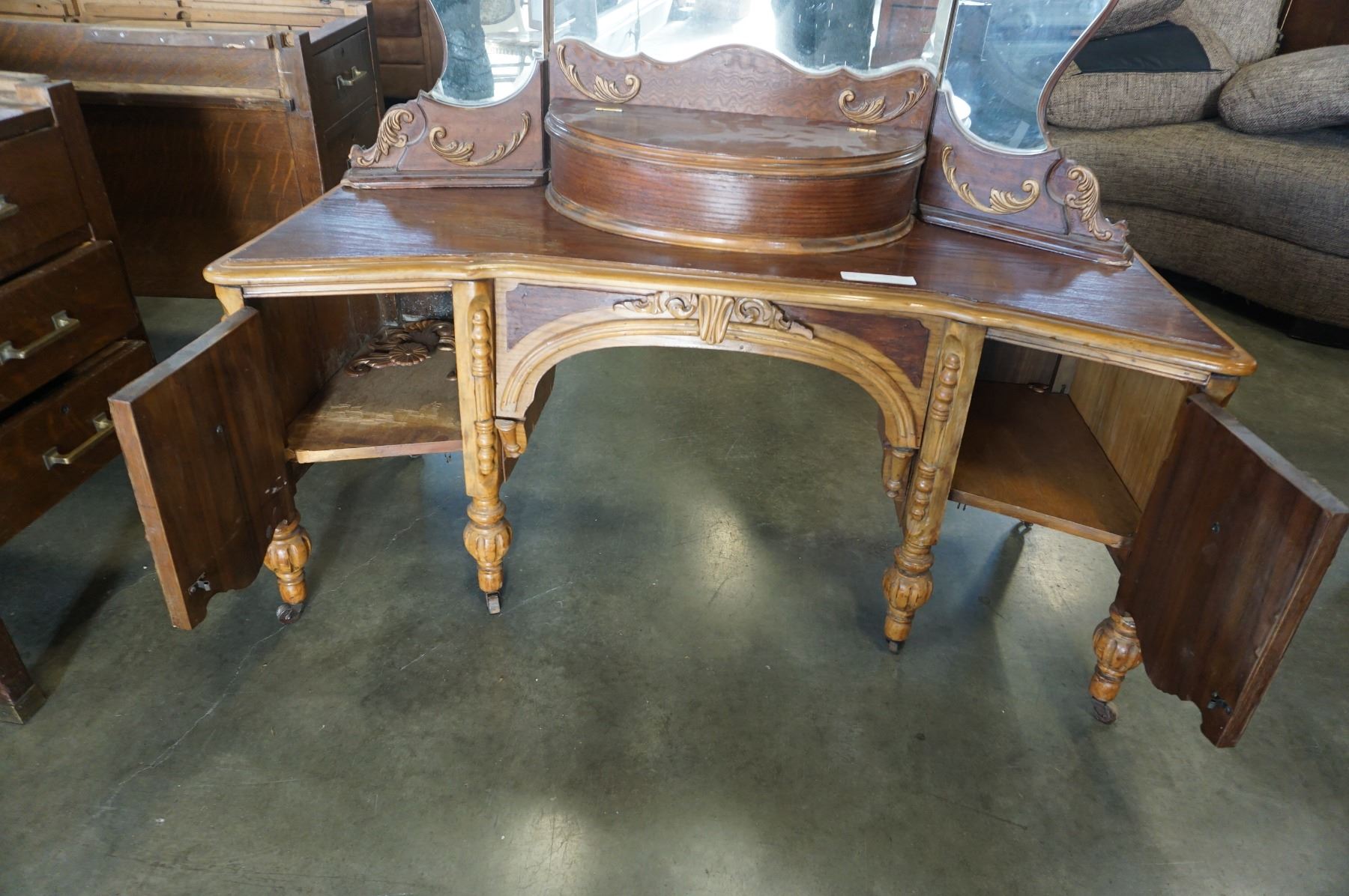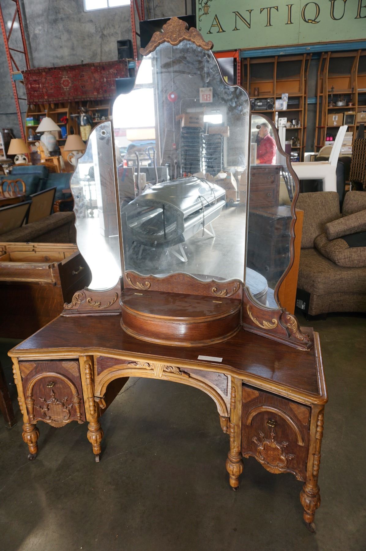 ANTIQUE CARVED DRESSER W/ MIRROR