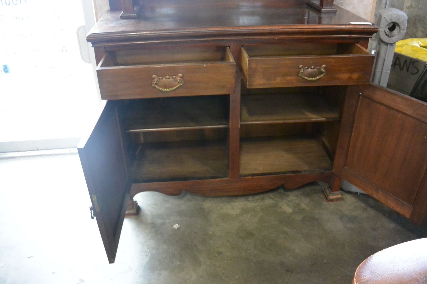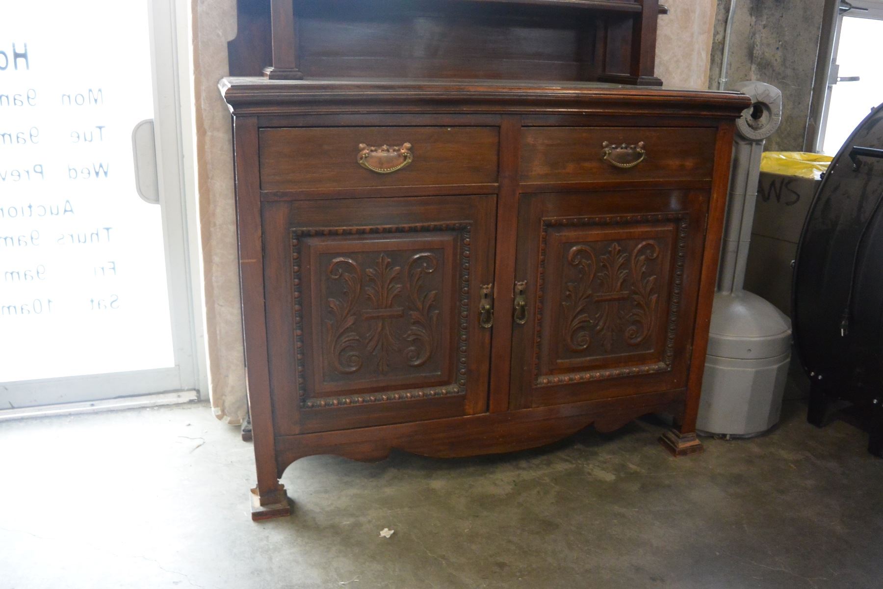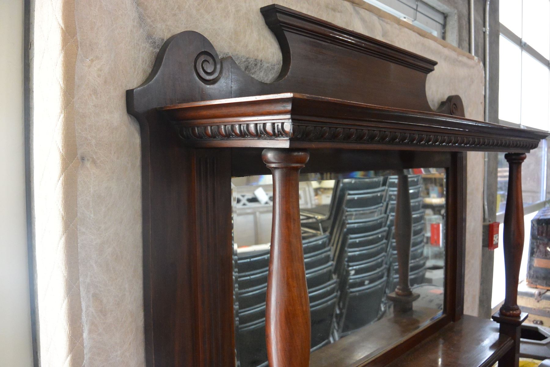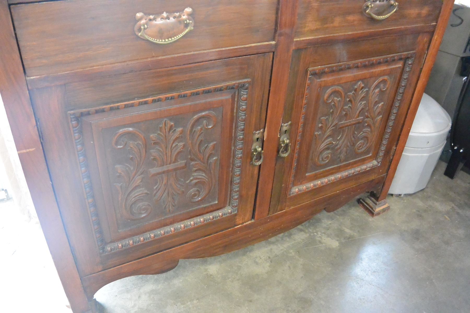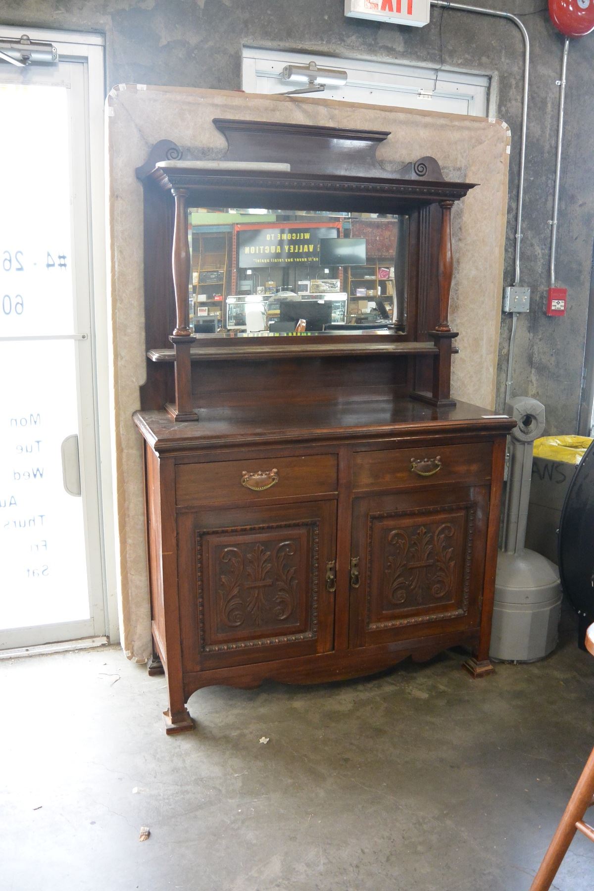 ANTIQUE CARVED SERVER WITH MIRROR GALLERY