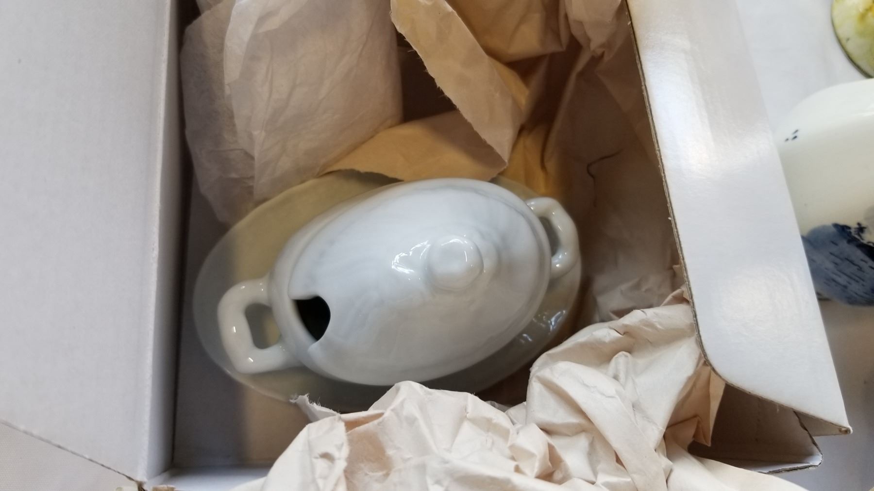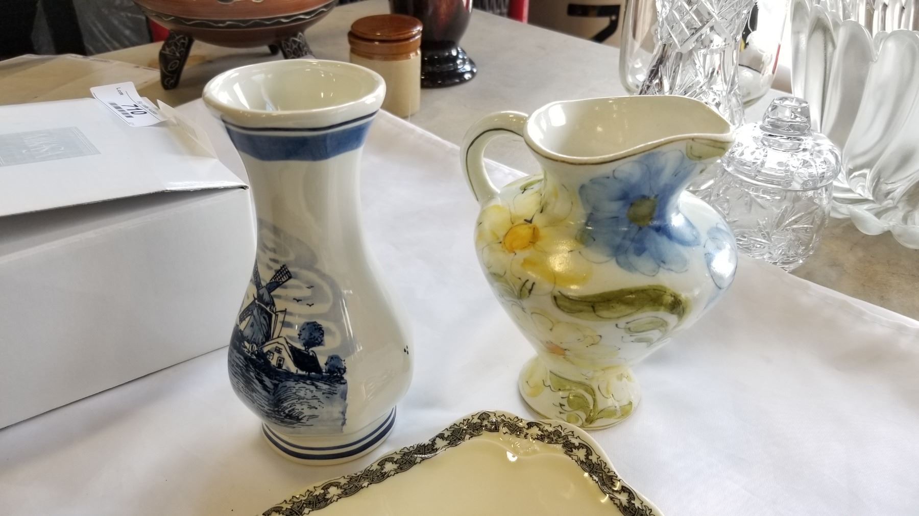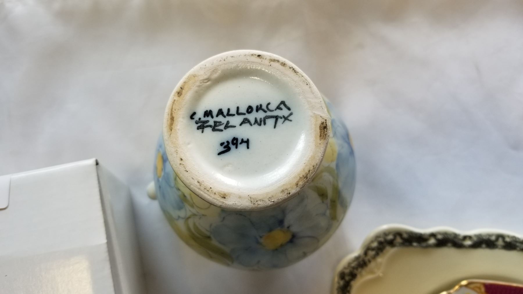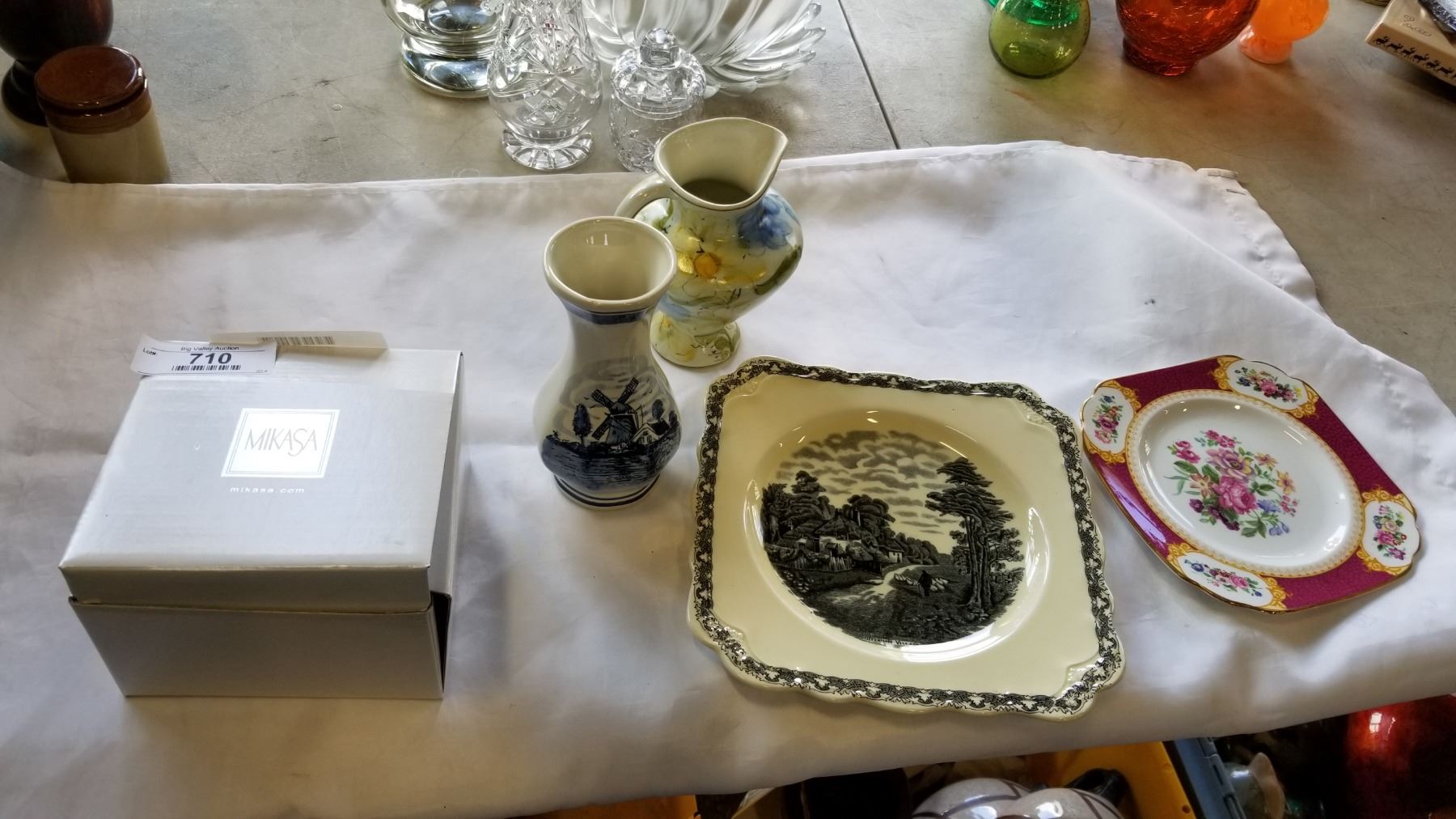 ANTIQUE CHINA PLATES AND VASE AND MIKASA COMPOTE