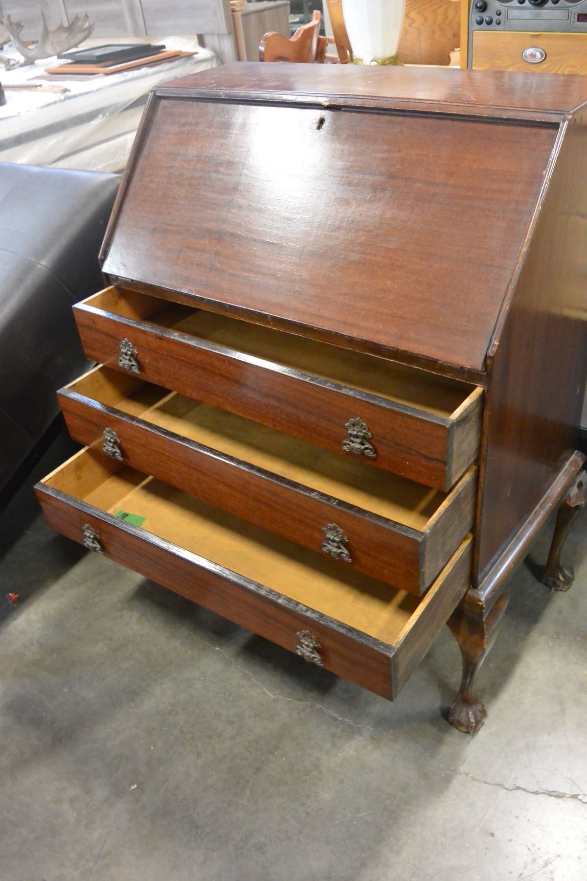 ANTIQUE DROP FRONT DESK PAWFOOT