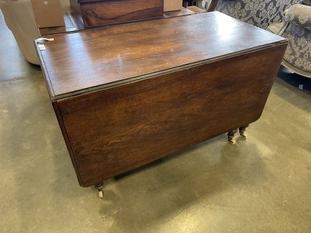ANTIQUE DROP LEAF DINING TABLE ON CASTERS