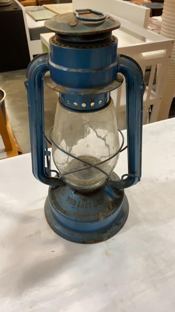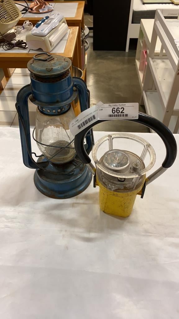 ANTIQUE FAR EAST LANTERN AND VINTAGE STAR HEADLIGHT LANTERN