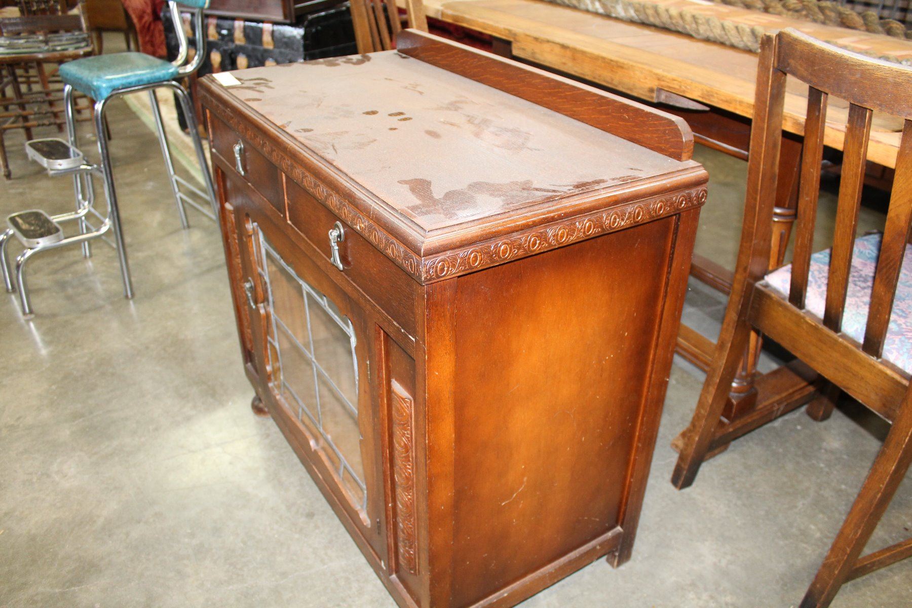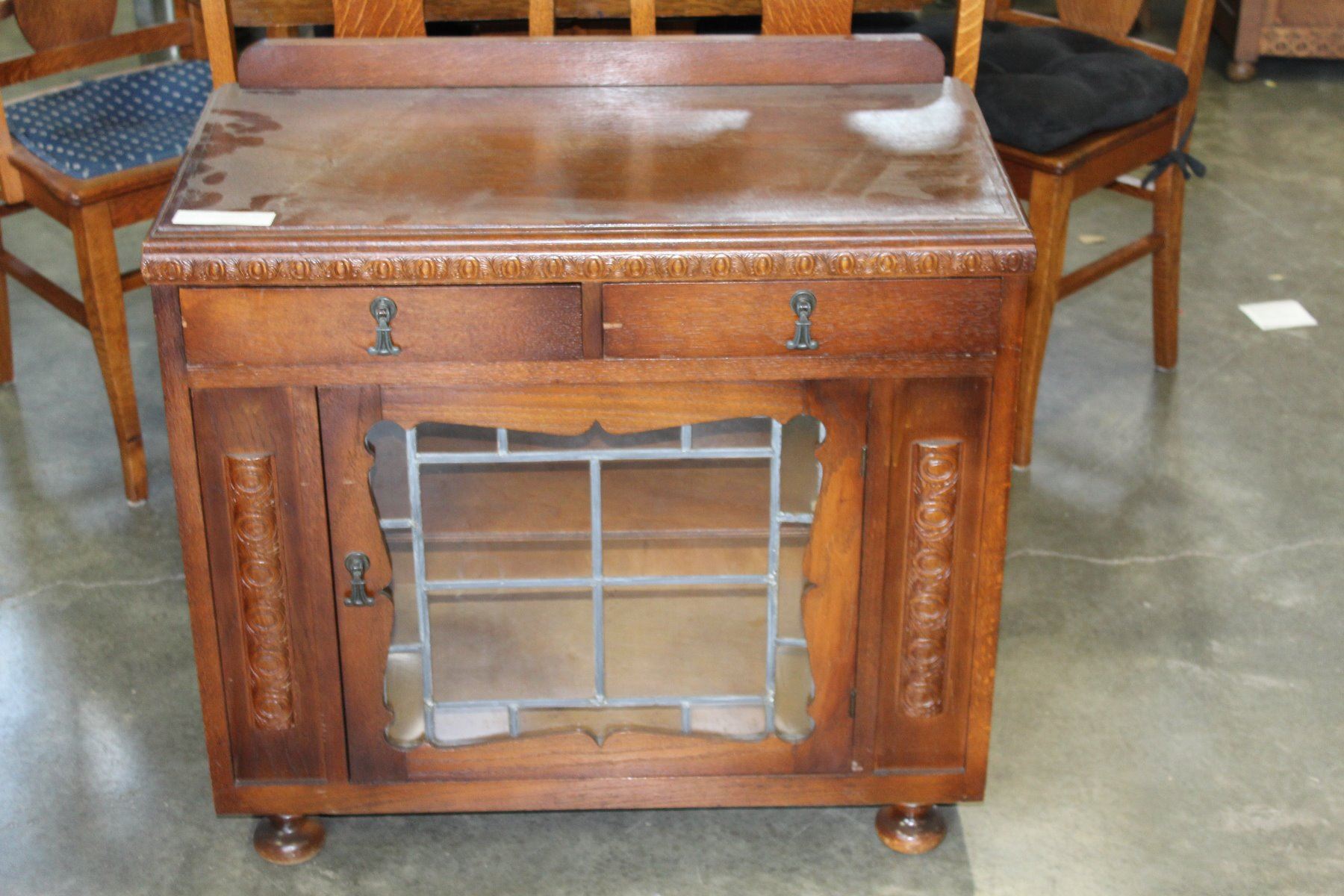 ANTIQUE LEADED GLASS DOOR OAK SERVER