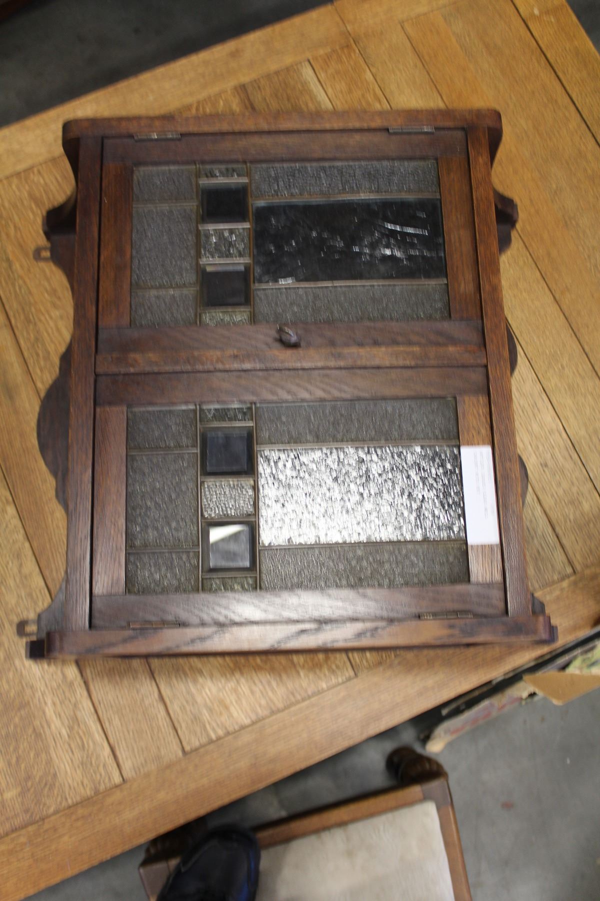 ANTIQUE LEADED GLASS WALL CABINET WITH KEY