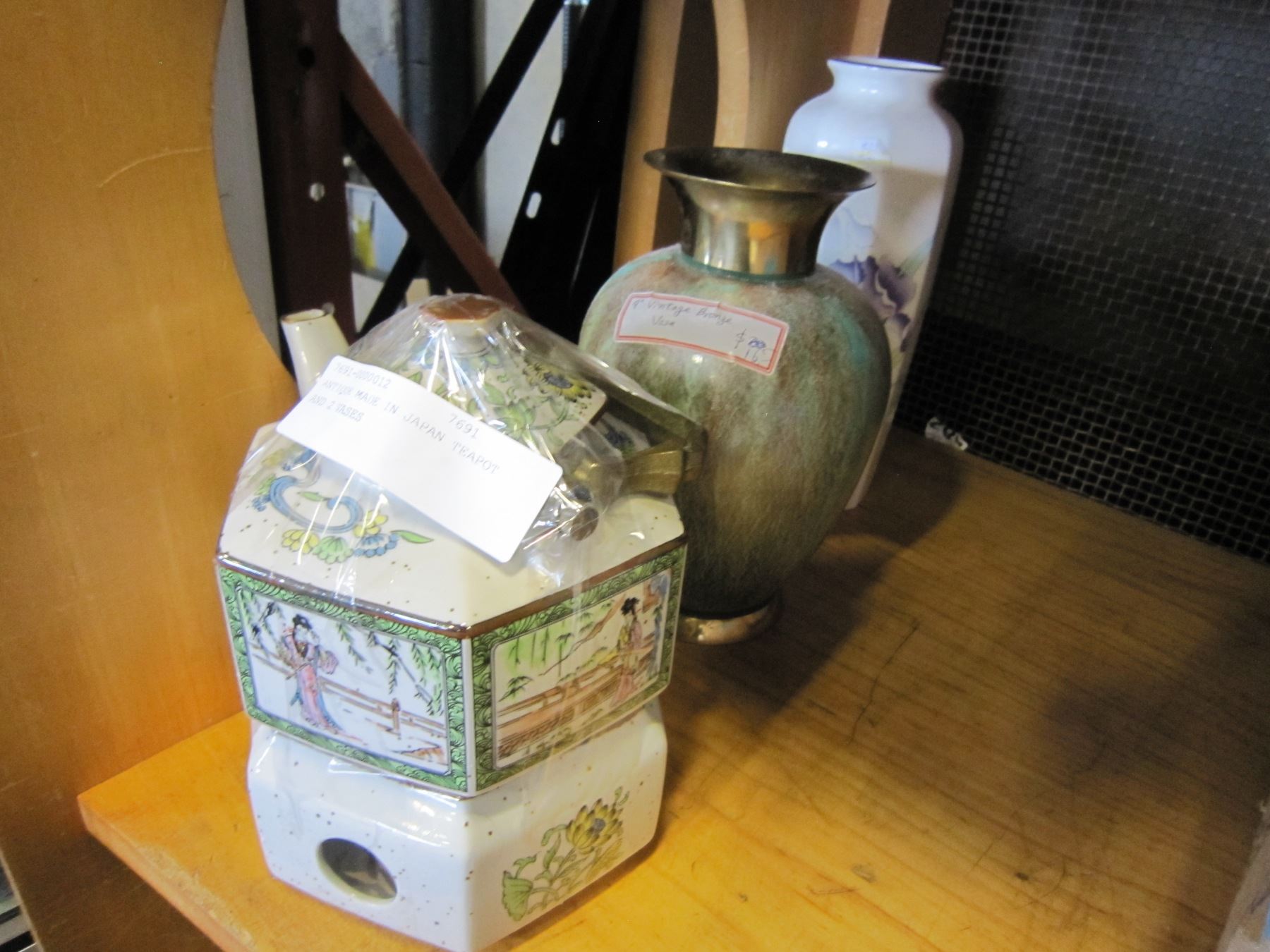 ANTIQUE MADE IN JAPAN TEAPOT AND 2 VASES