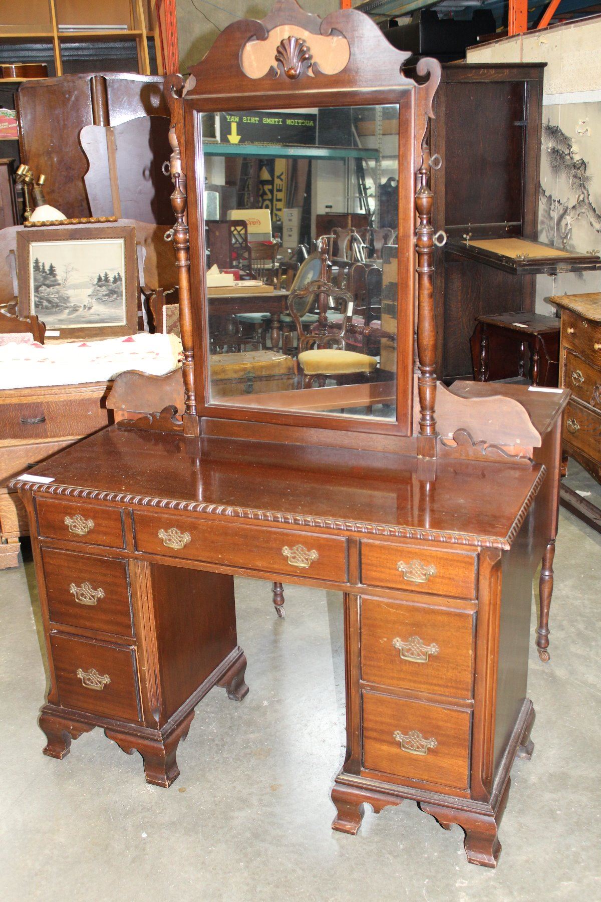 ANTIQUE MAHOGANY VANITY WITH MIRROR