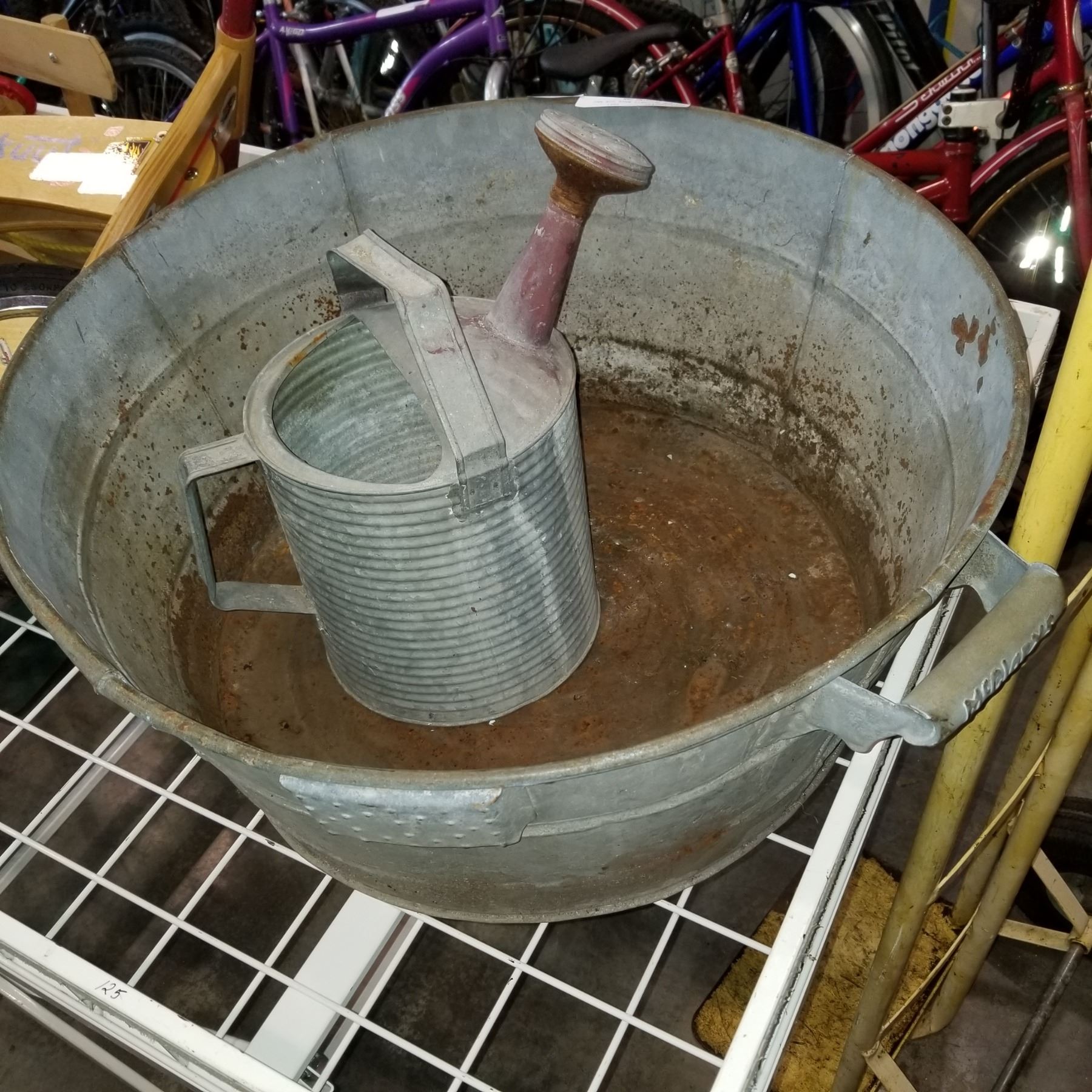 ANTIQUE MCCLARYS WASH TUB AND ANTIQUE WATERING CAN