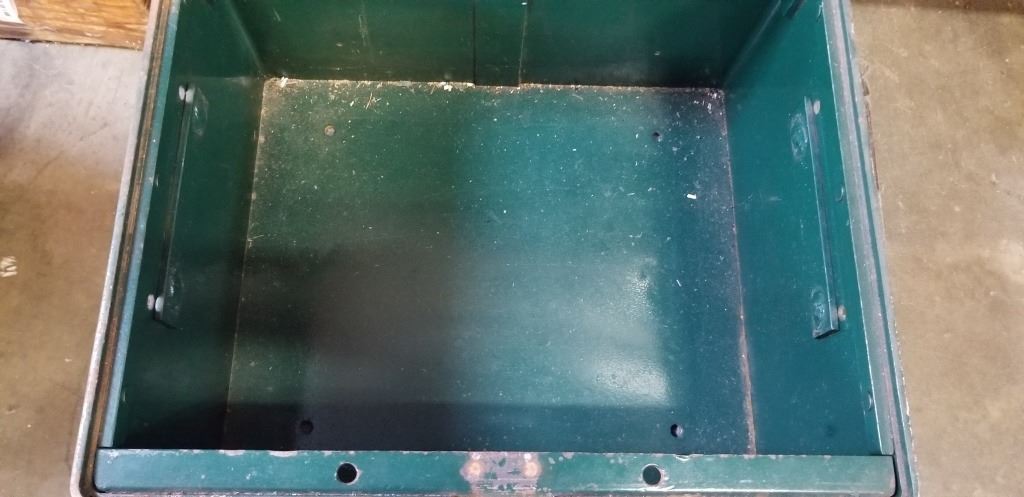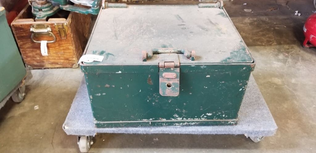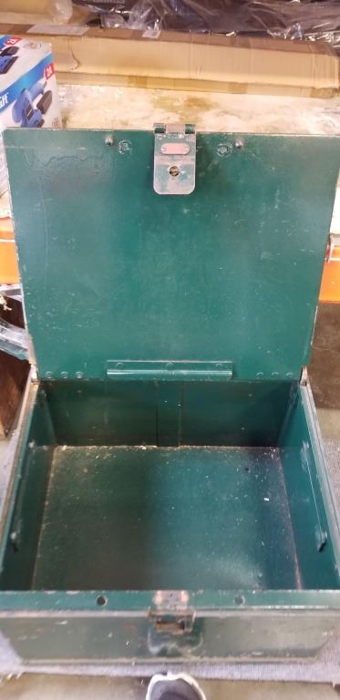 ANTIQUE METAL SHIP STRONG BOX, 19 X 22 INCH