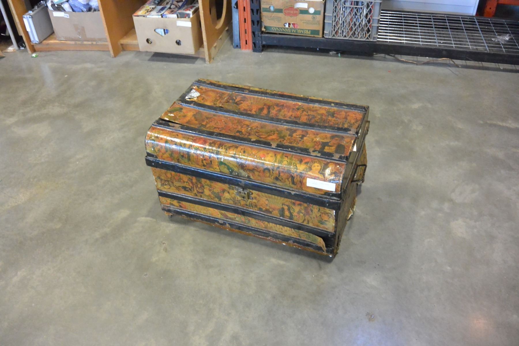 ANTIQUE METAL STEAMER TRUNK WITH CONTENTS
