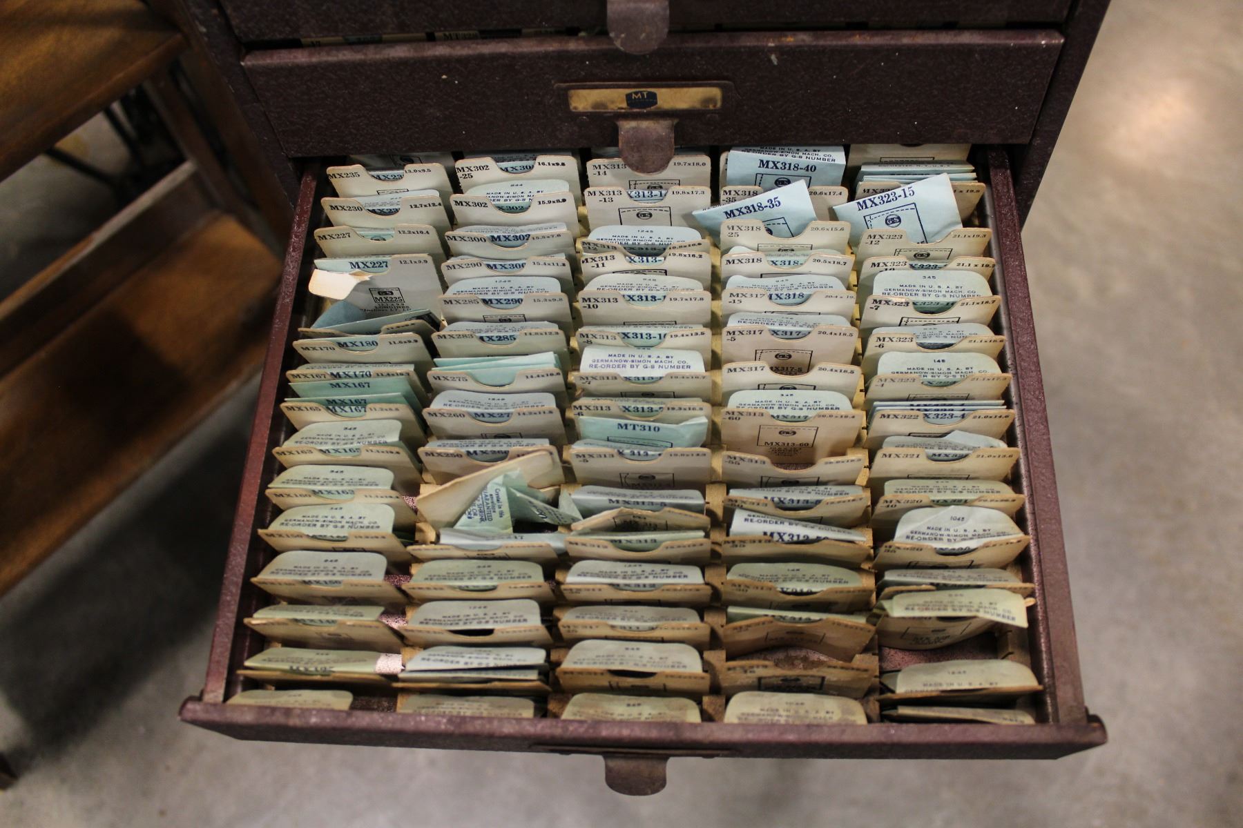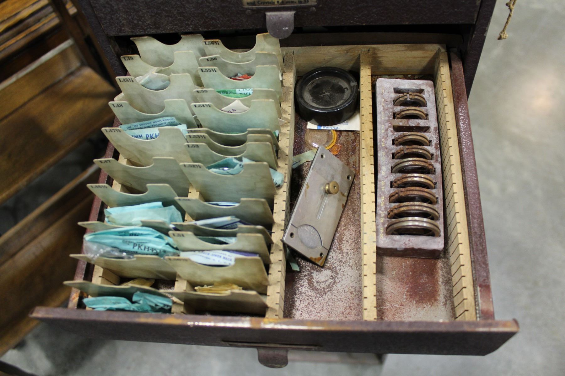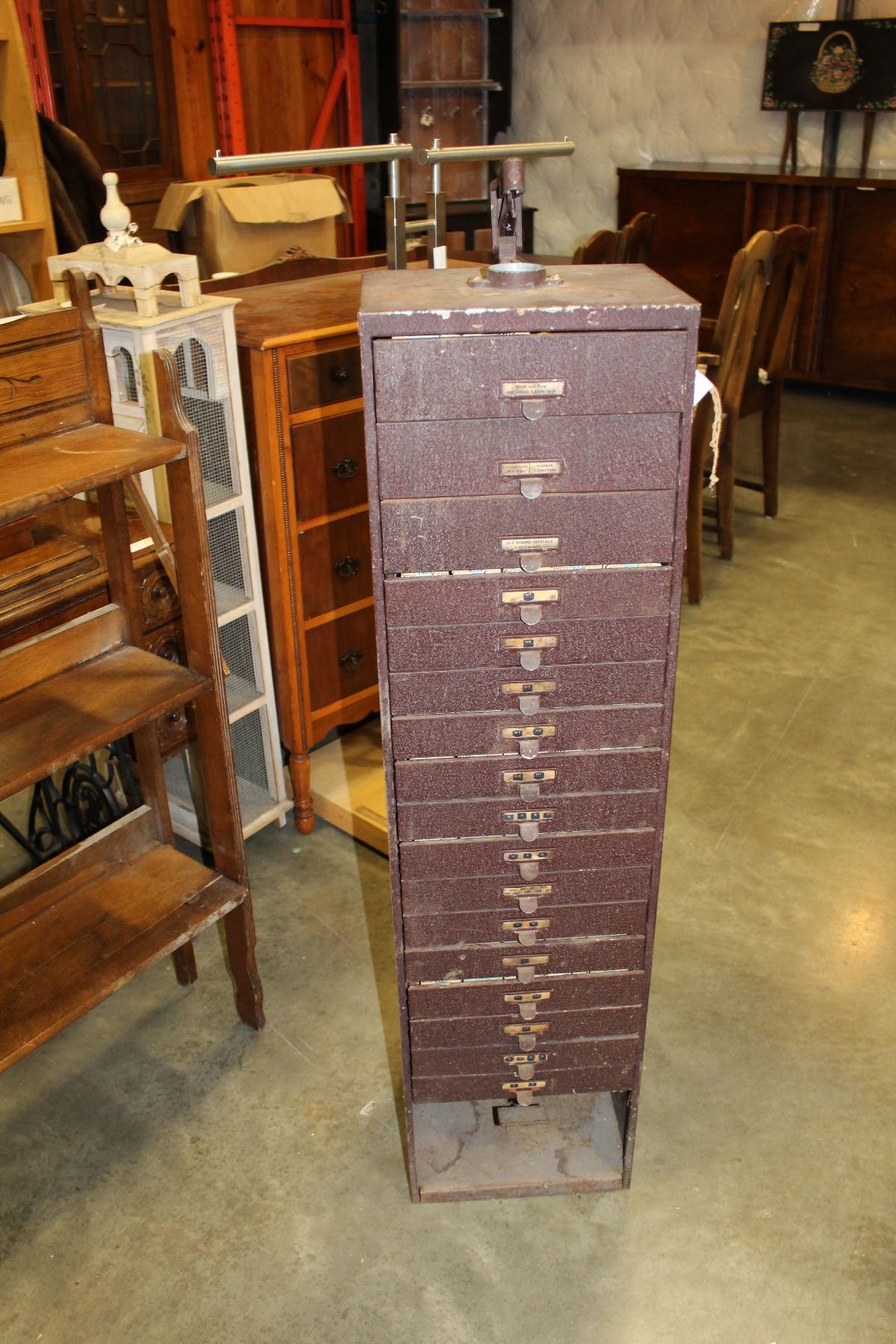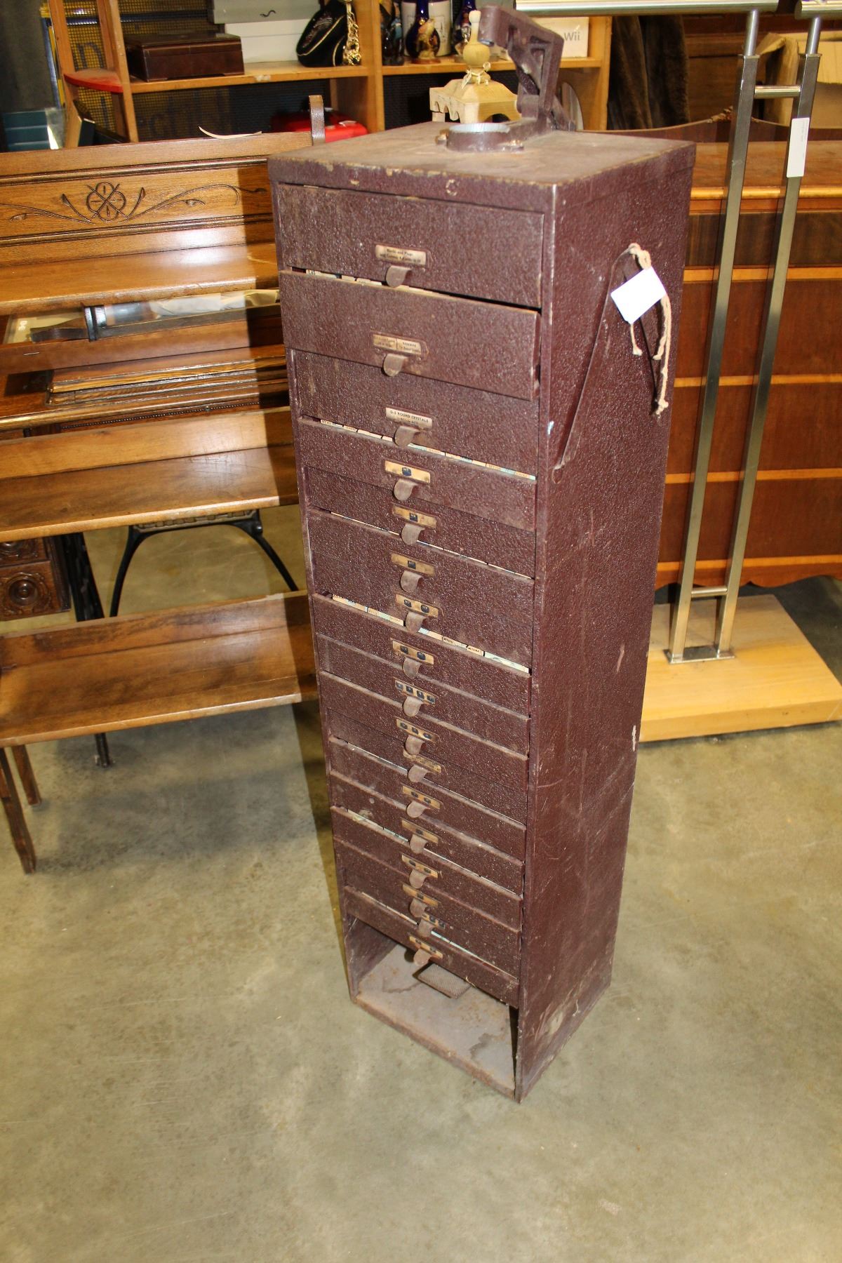 ANTIQUE METAL WATCH MAKERS CABINET