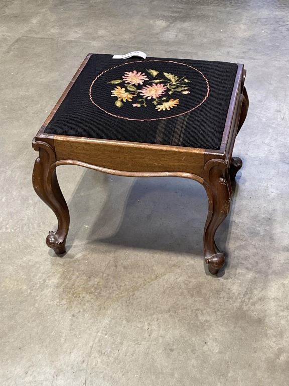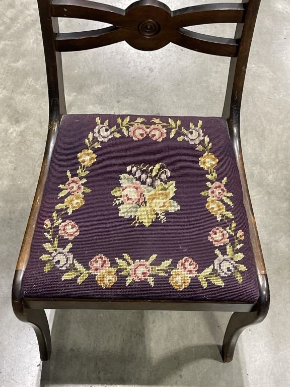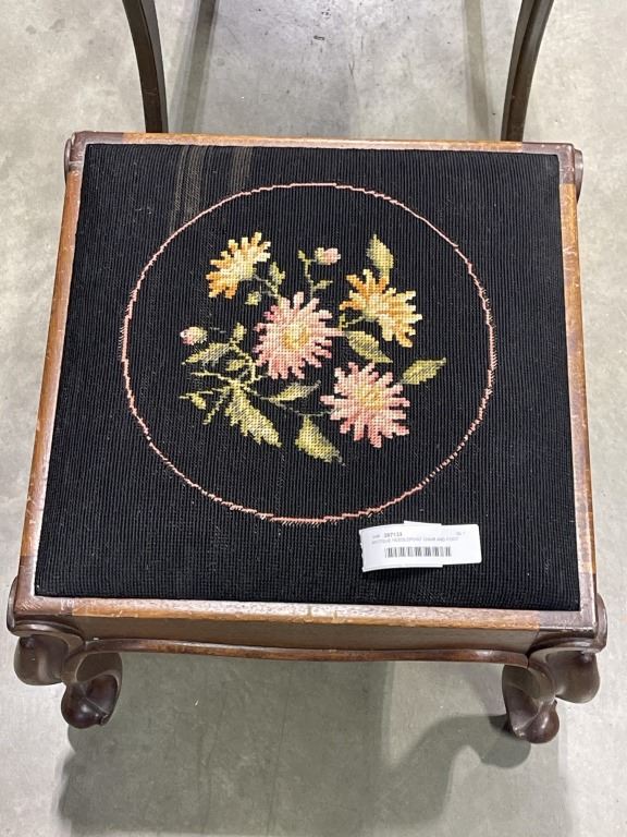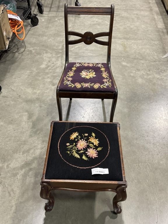 ANTIQUE NEEDLEPOINT CHAIR AND FOOT STOOL