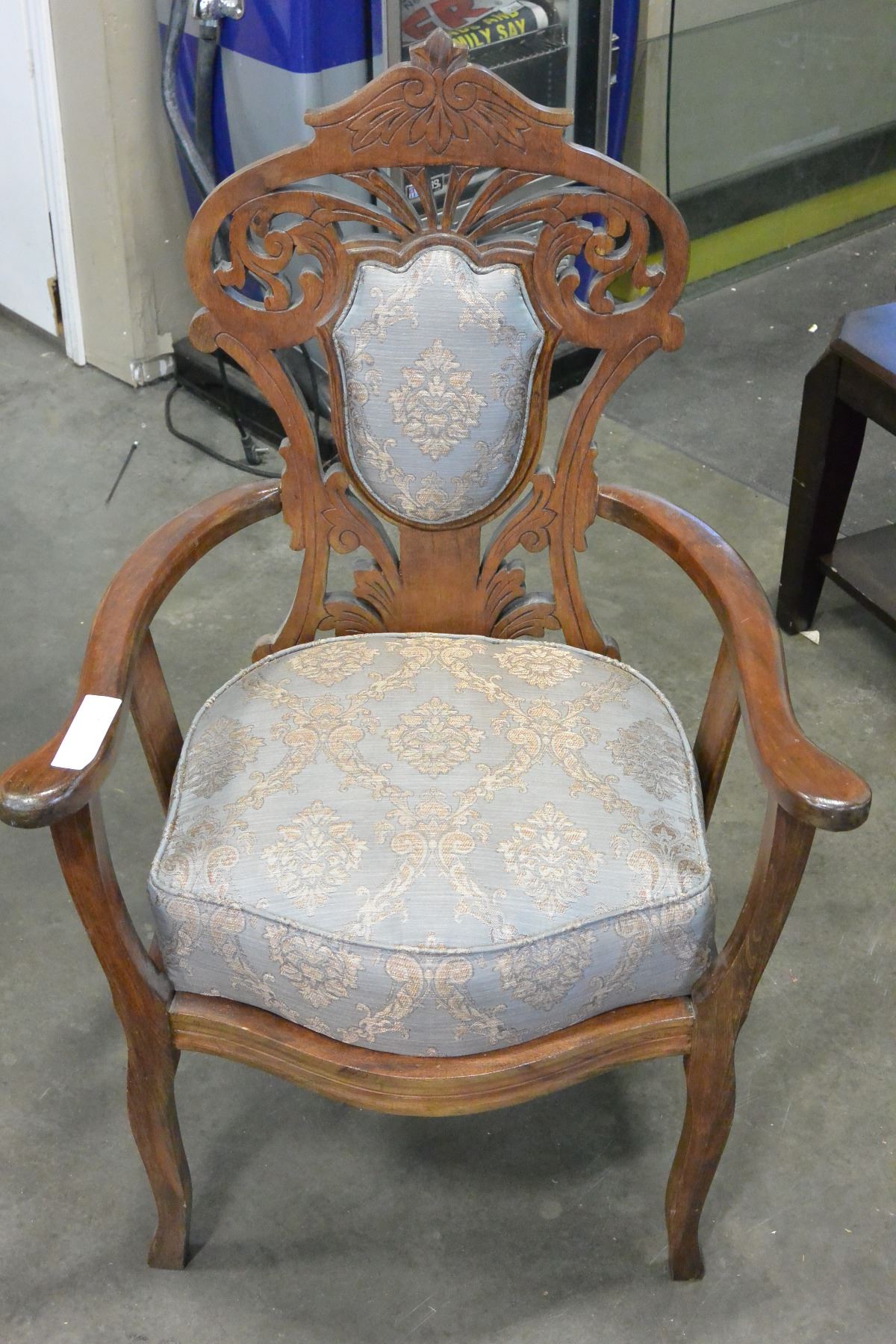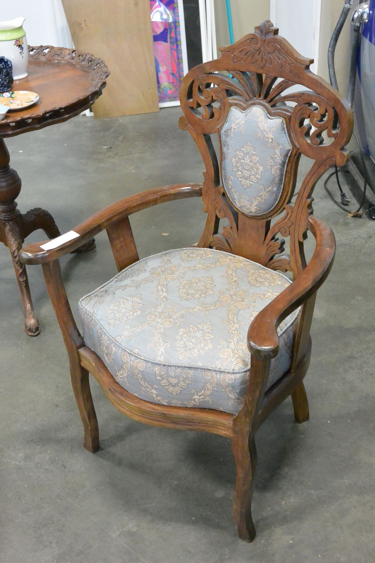 ANTIQUE NEWLY UPOLSTERED PARLOR CHAIR