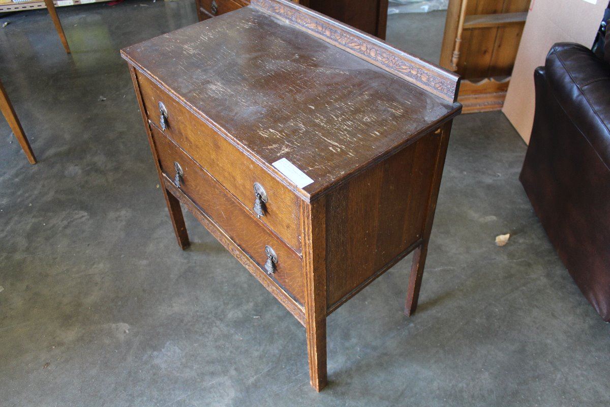 ANTIQUE OAK 2 DRAWER DRESSER WITH CARVED GALLERY