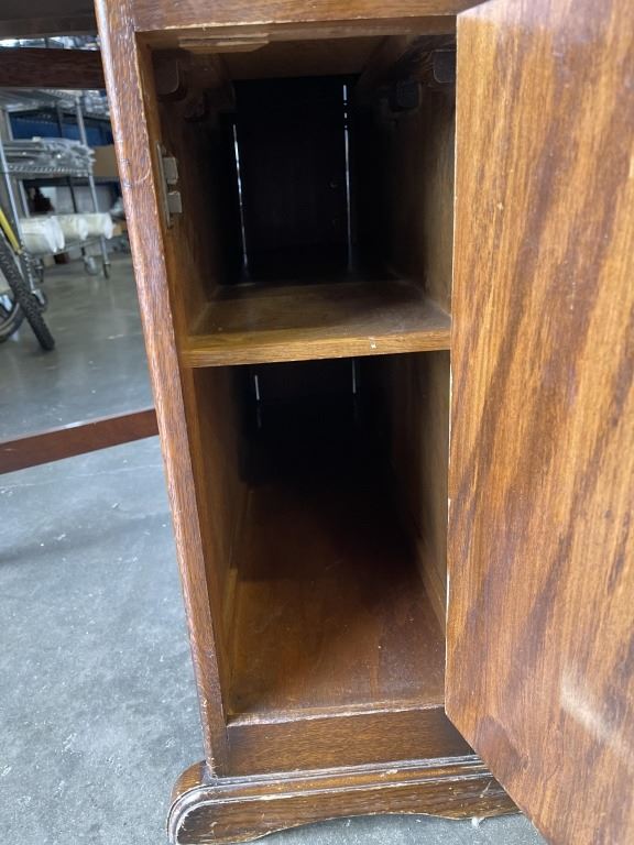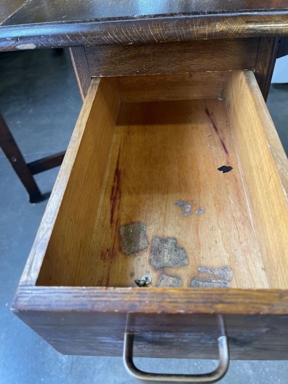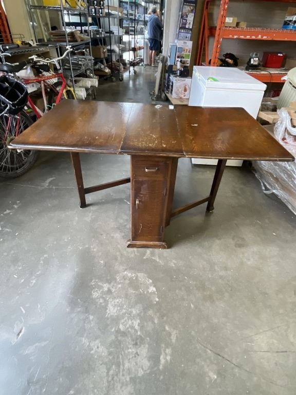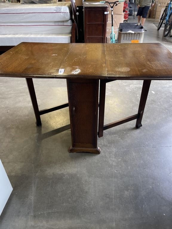 ANTIQUE OAK DROP SIDE TABLE WITH STORAGE