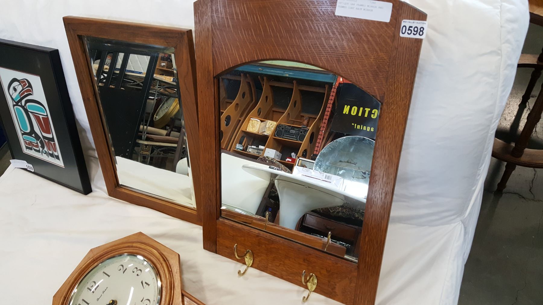 ANTIQUE OAK FRAMED MIRROR AND FRAMED COAT RACK MIRROR