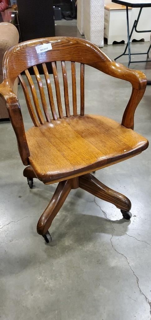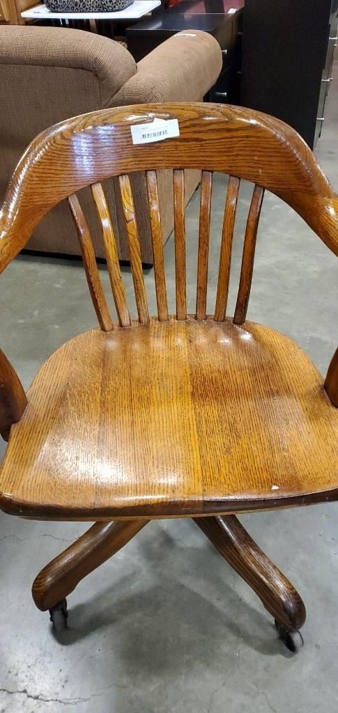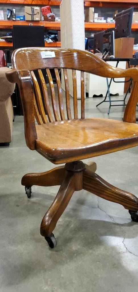 ANTIQUE OAK RAILROAD OFFICE CHAIR