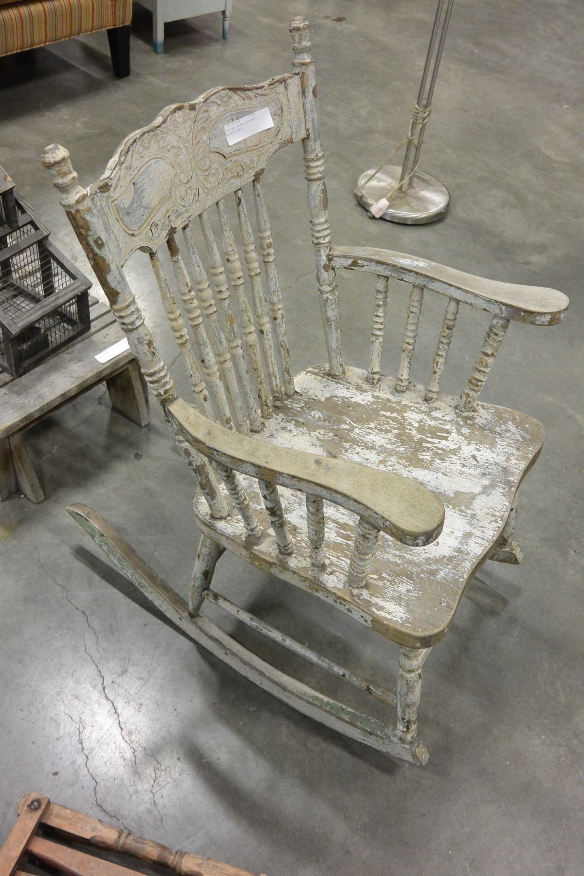 ANTIQUE PAINTED PRESSBACK ROCKING CHAIR