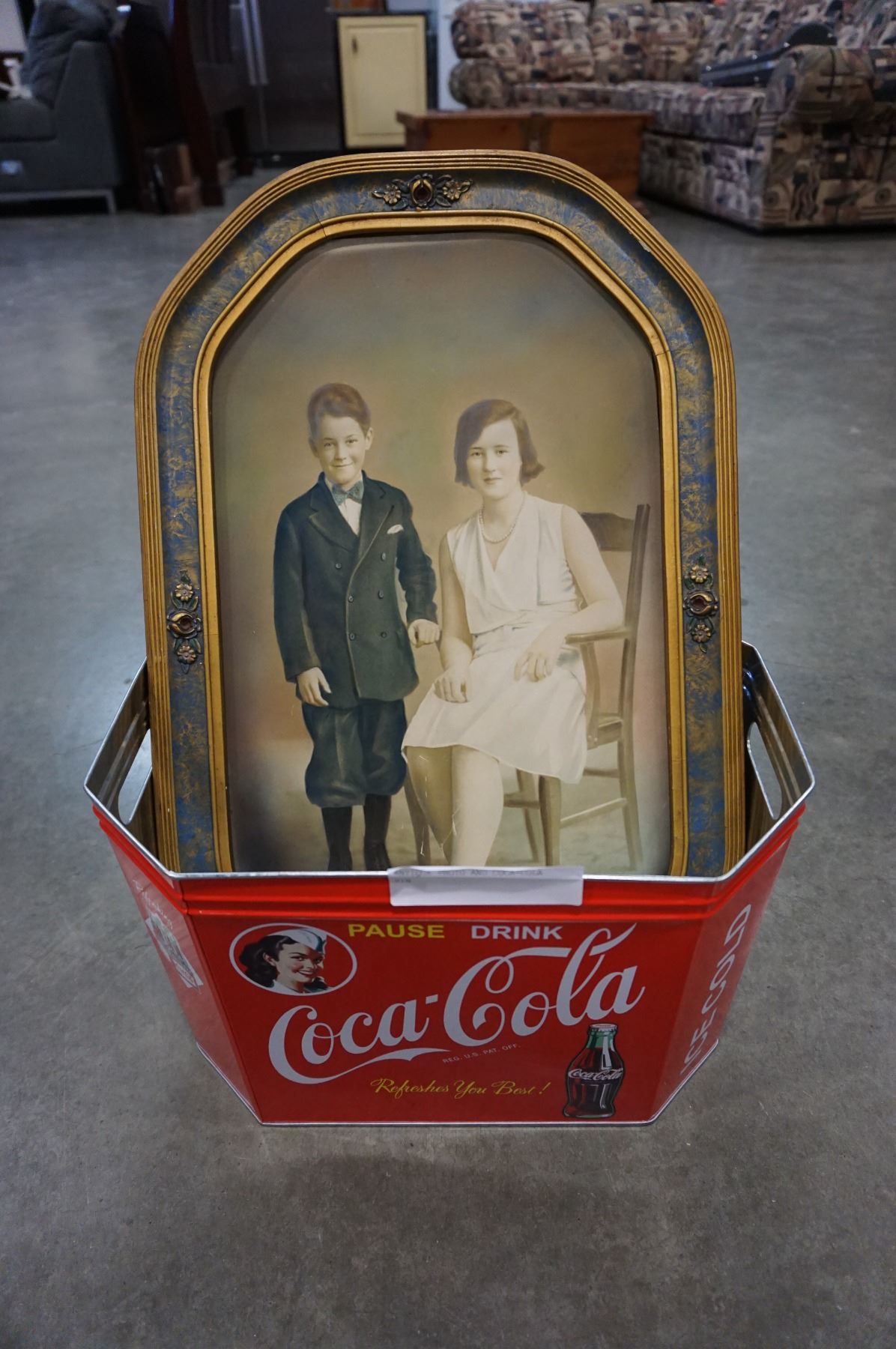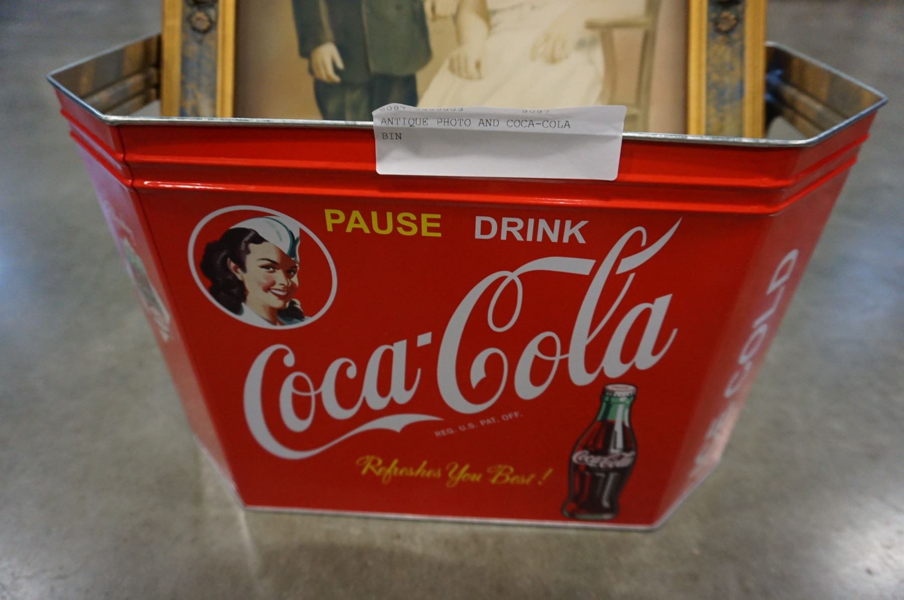 ANTIQUE PHOTO AND COCA-COLA BIN