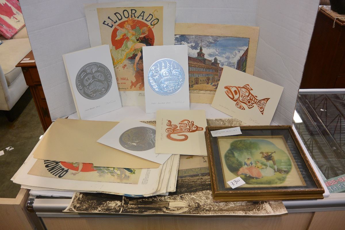 ANTIQUE PICTURES AND BILL REID PRINTS ETC
