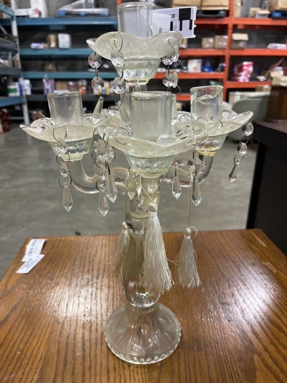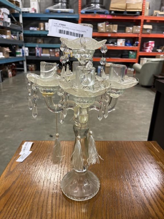 ANTIQUE PRESSED GLASS CANDLEABRA