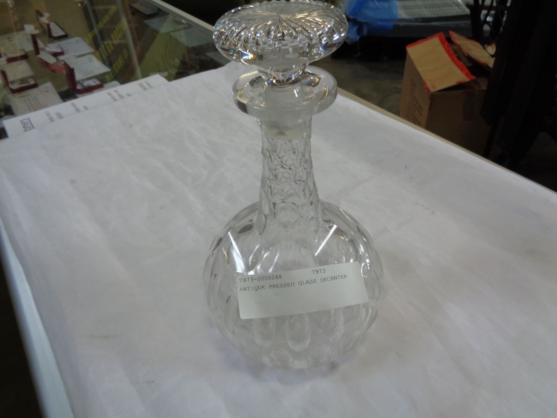 ANTIQUE PRESSED GLASS DECANTER