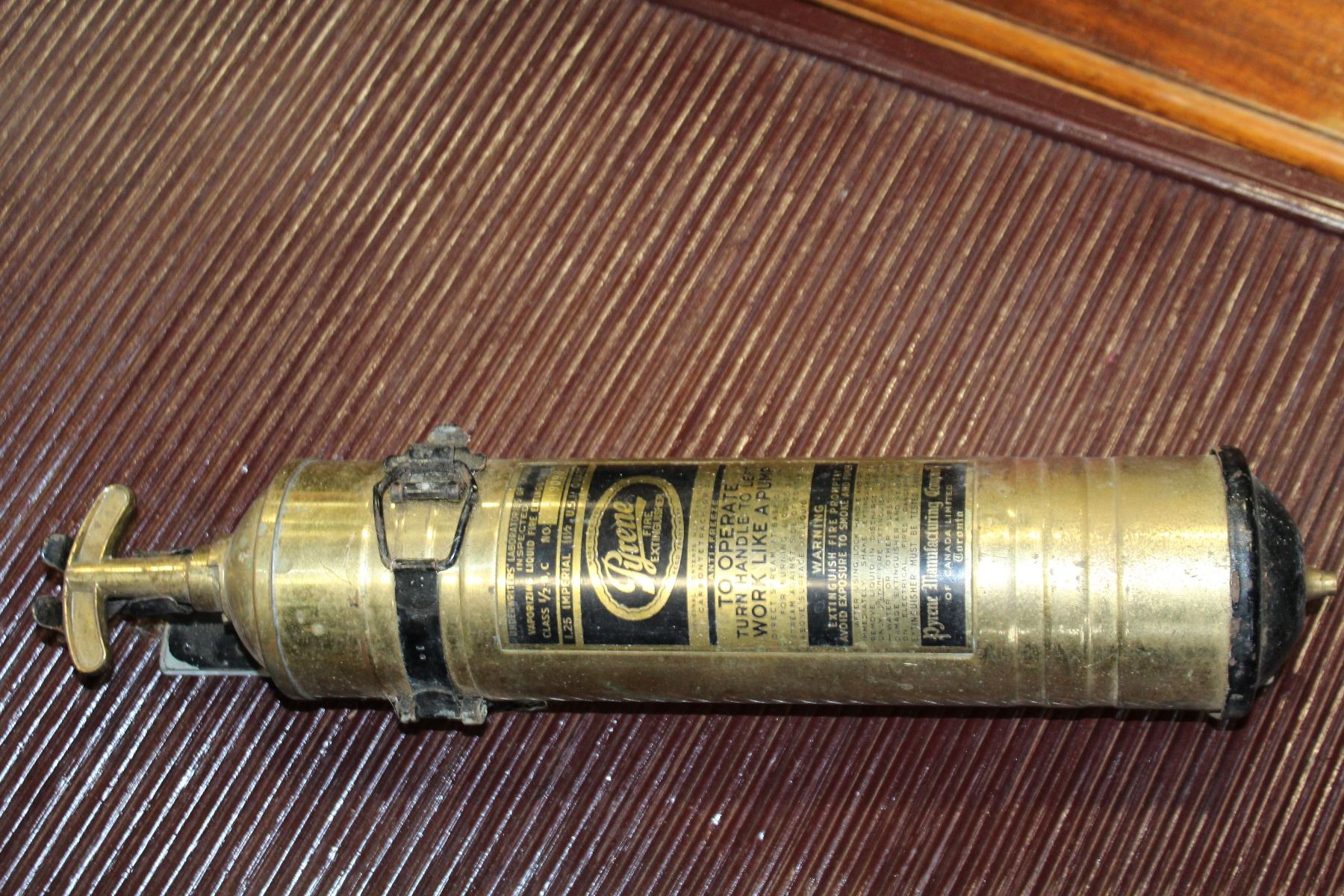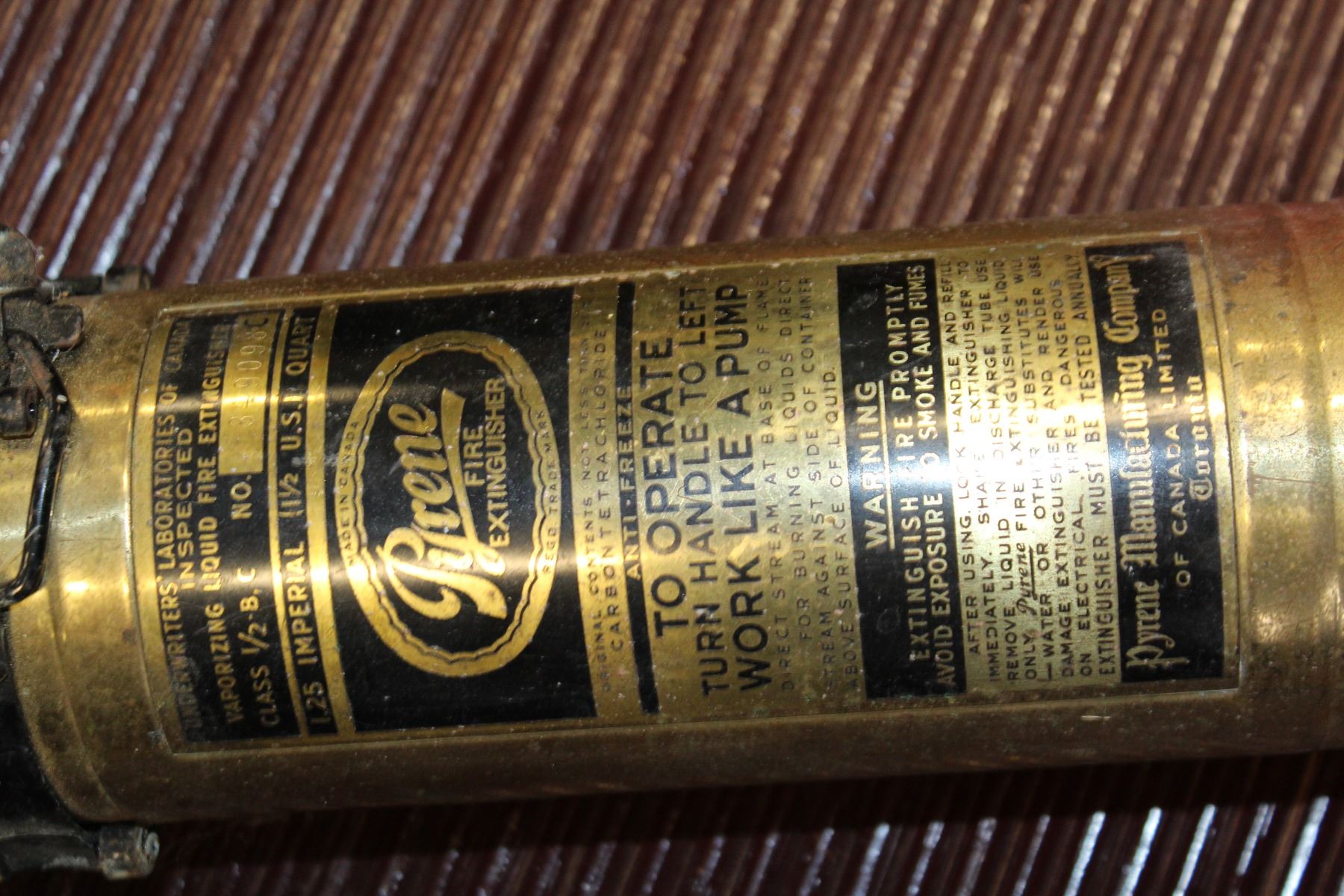 ANTIQUE PYRENE MANUFACTURING WALL MOUNT BRASS EXTINGUISHER
