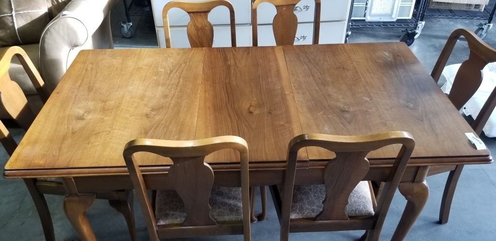 ANTIQUE QUEEN ANNE DINING TBALE AND 6 CHAIRS