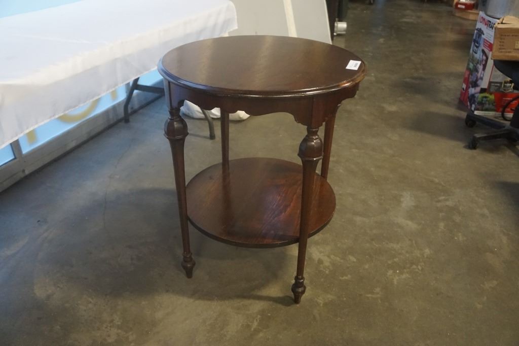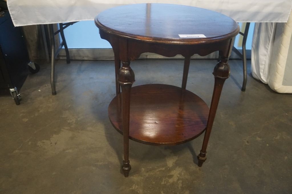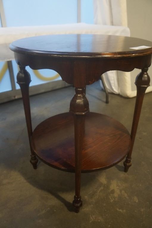 ANTIQUE ROUND MAHOGANY 2 TIERED PARLOUR TABLE