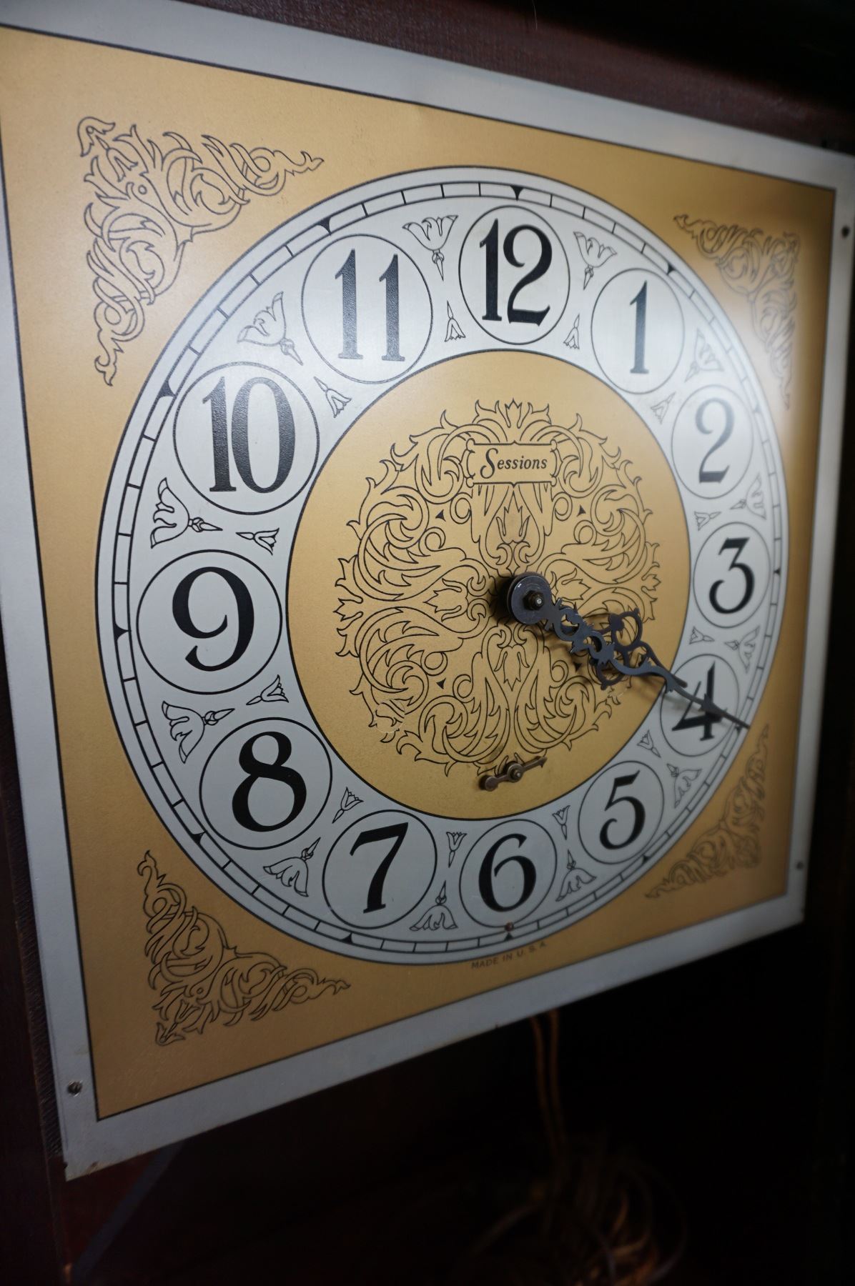 ANTIQUE SESSIONS WOODEN CLOCK W/ HIDDEN DOOR W/4 SHELVES