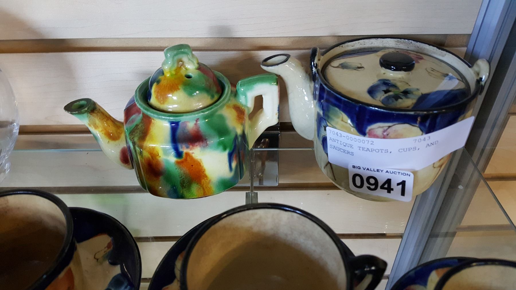ANTIQUE TEAPOTS, CUPS, AND SAUCERS