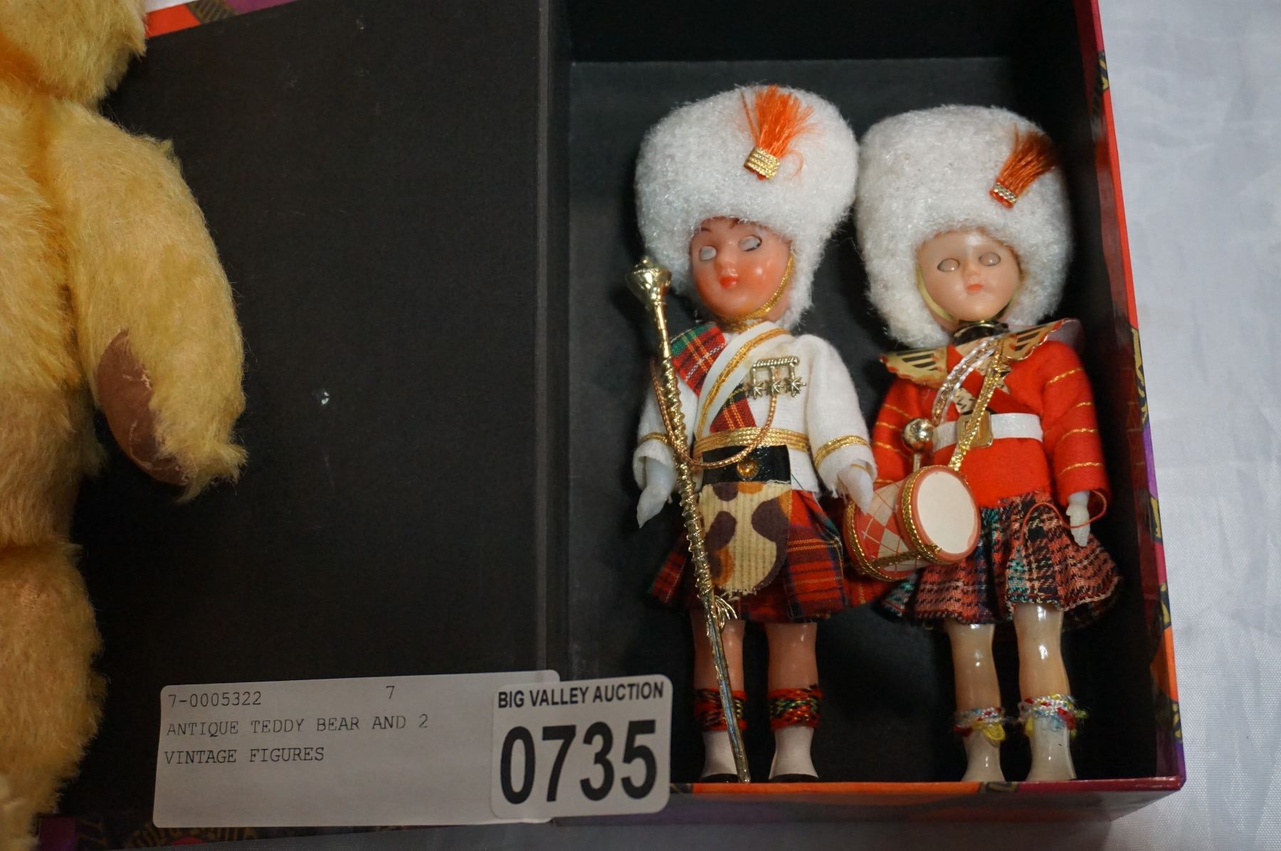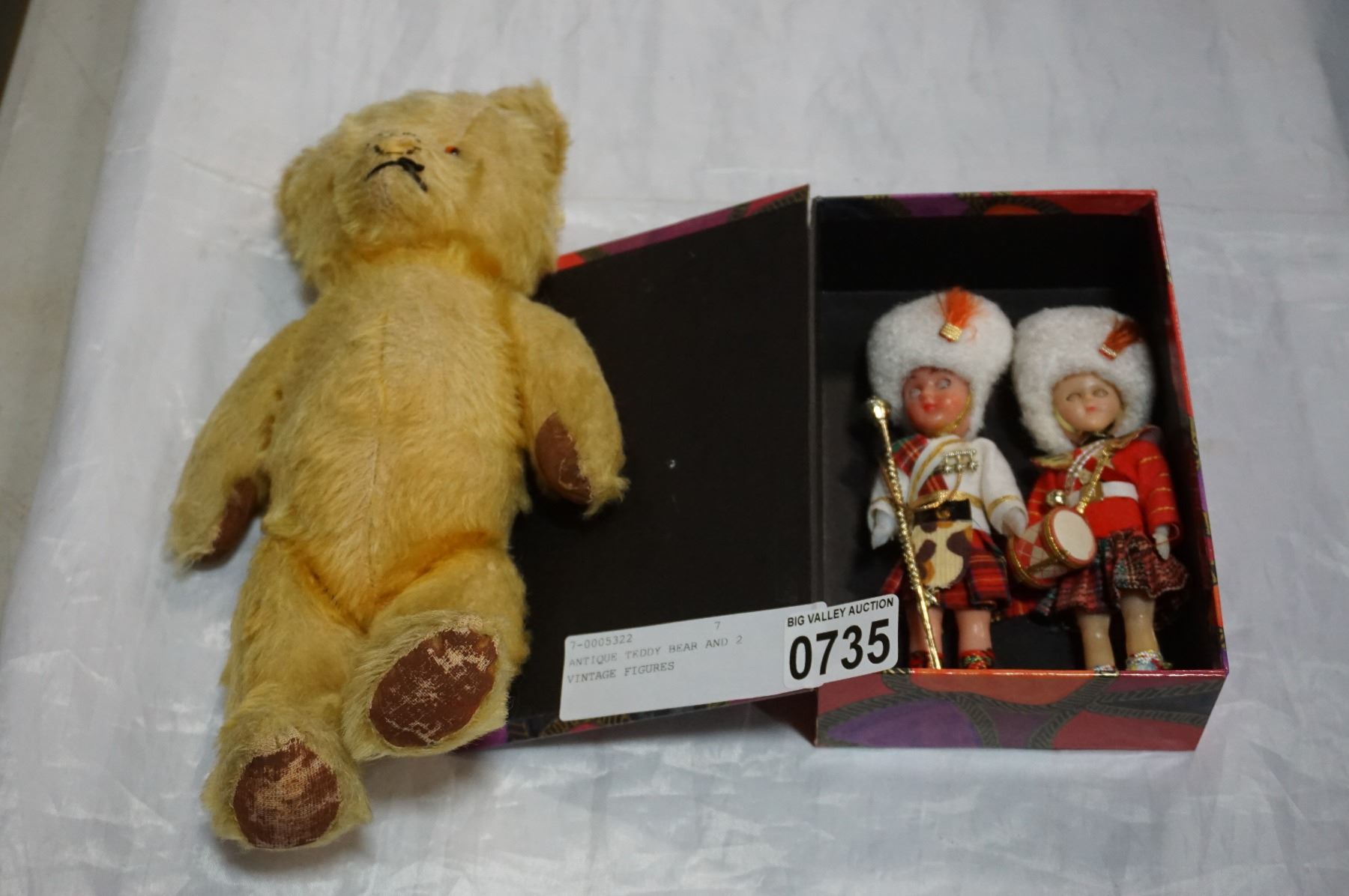 ANTIQUE TEDDY BEAR AND 2 VINTAGE FIGURES