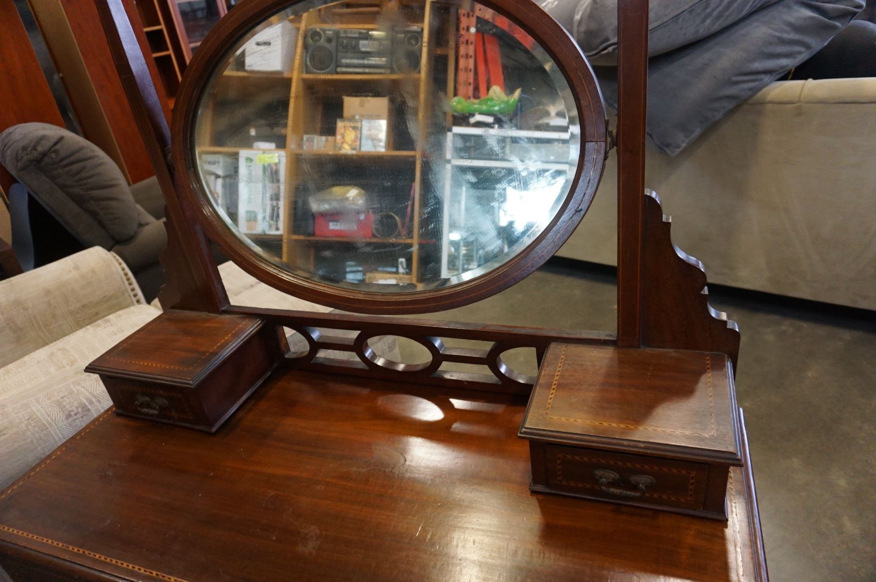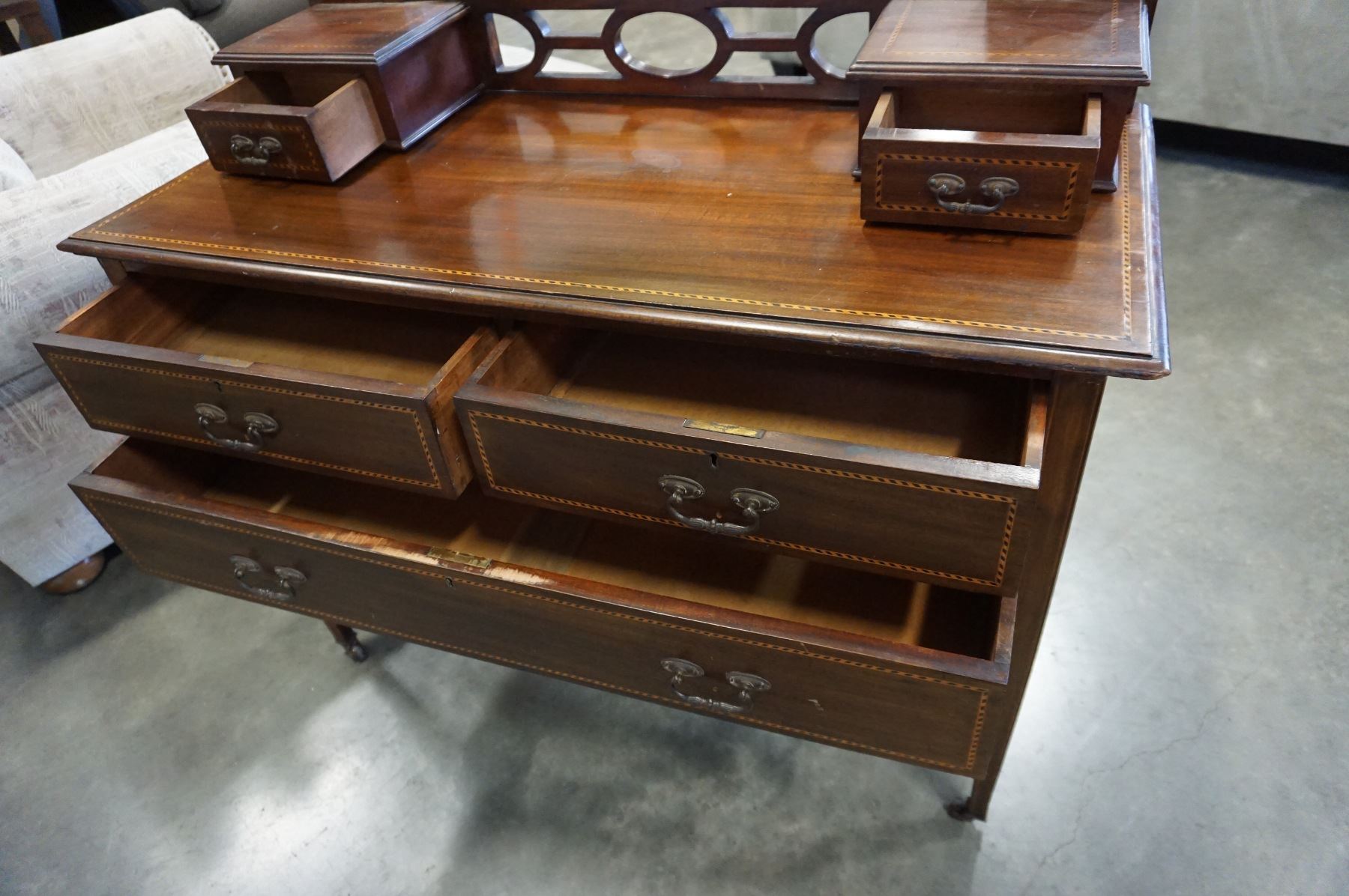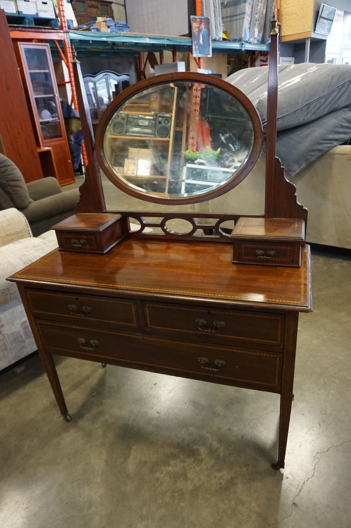 ANTIQUE VANITY DESK W/ SWIVEL MIRROR ON WHEELS
