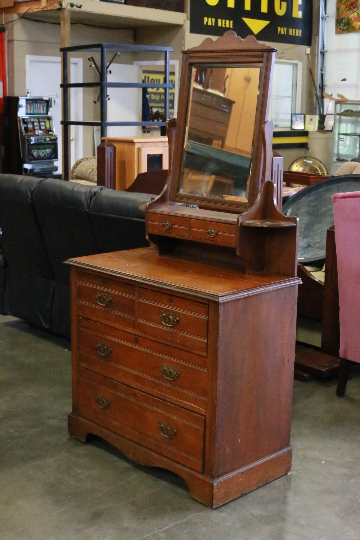ANTIQUE VANITY DRESSER WITH MIRROR