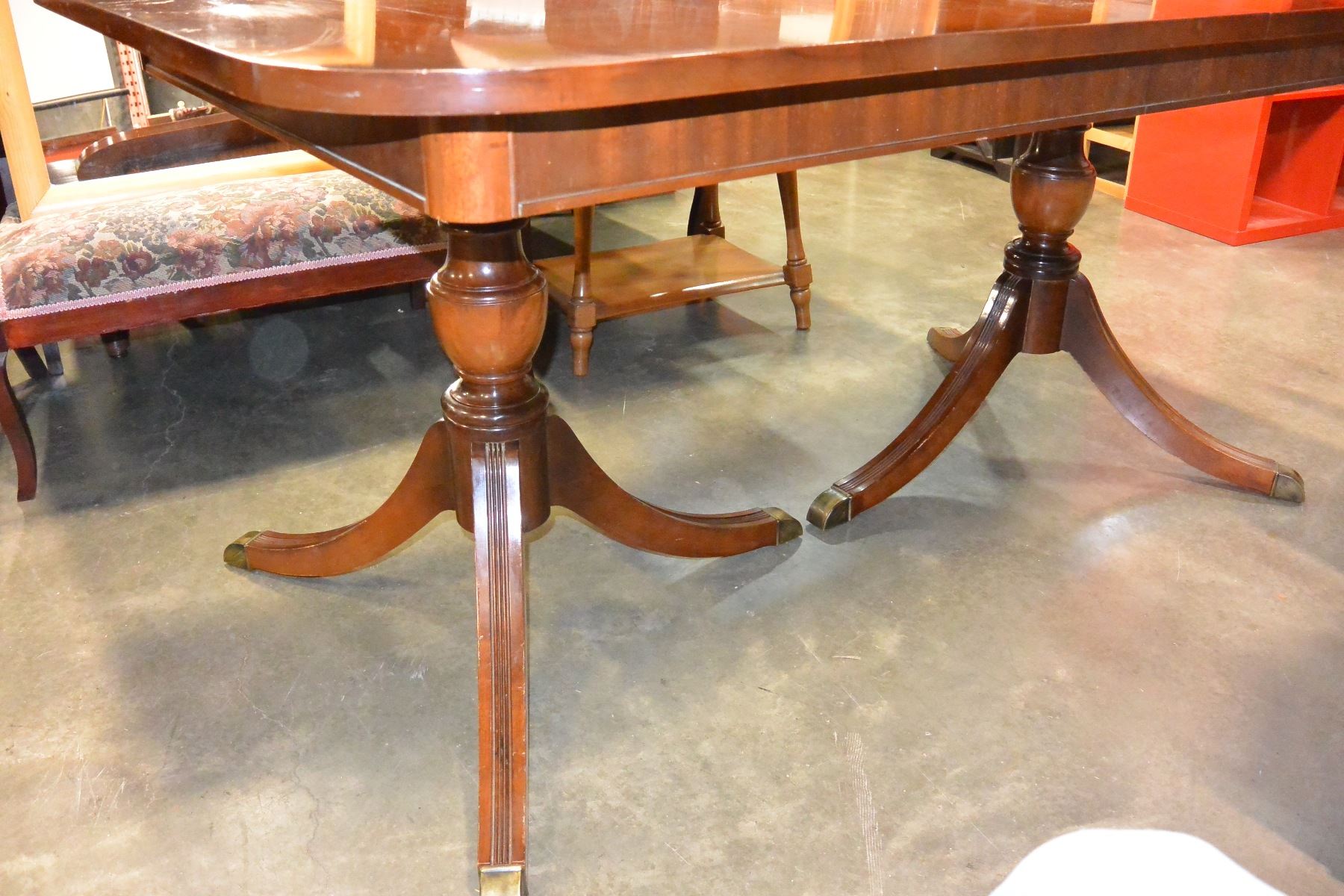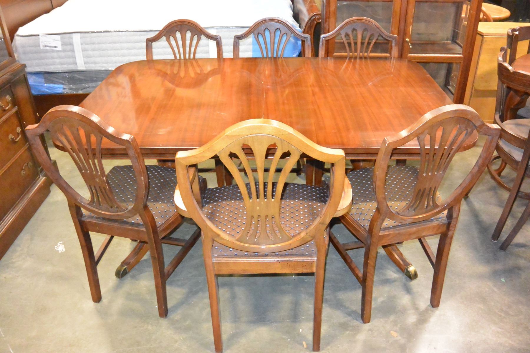 ANTIQUE WALNUT DUNCAN PHYFFE STYLE DINING TABLE WITH SIX CHAIRS BY GIBBARD